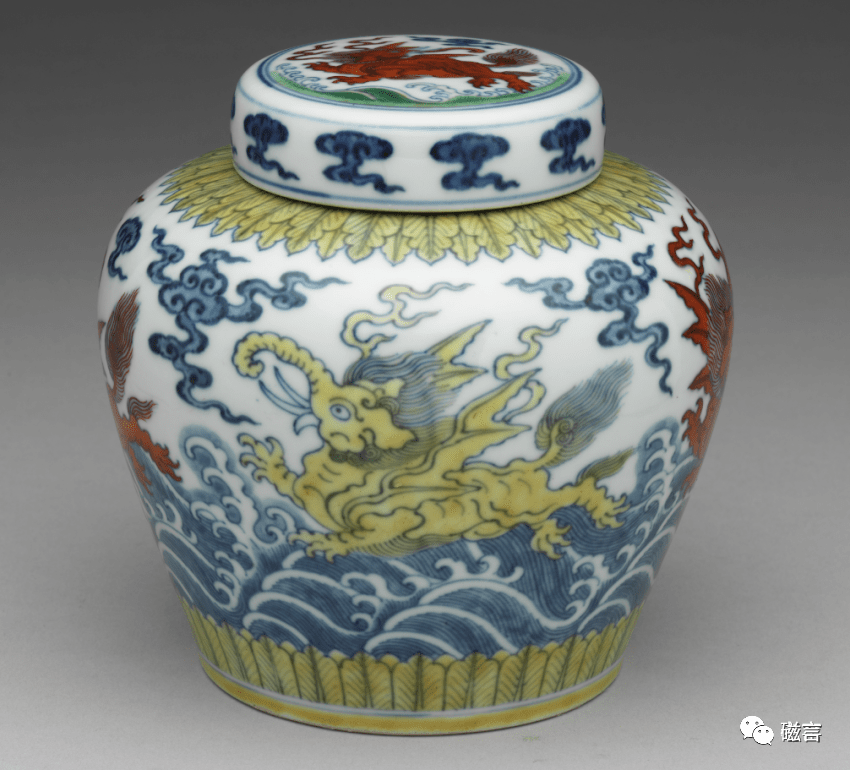 明成化 天字款斗彩波涛飞象盖罐(正面) 台北故宫博物院馆藏