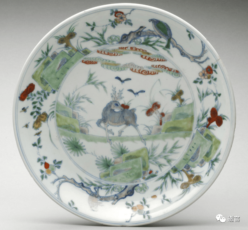 清雍正 斗彩鹿衔灵芝纹盘 美国费城艺术博物馆藏