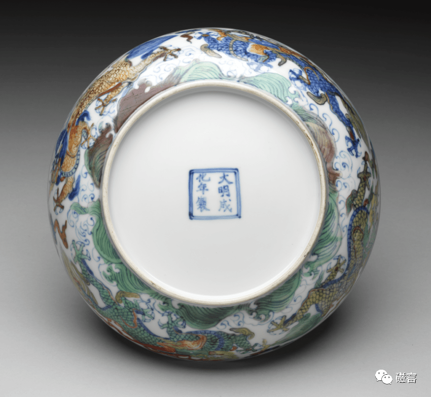 明 成化款斗彩波涛行龙纹盘(底部) 台北故宫博物院馆藏