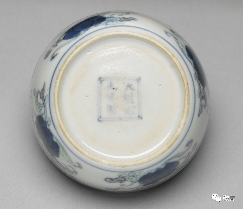 明成化 天字款斗彩波涛飞象盖罐(底部) 台北故宫博物院馆藏