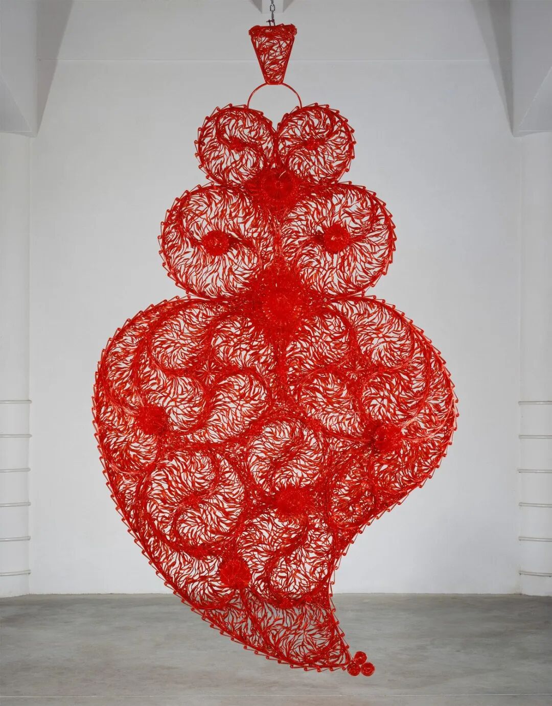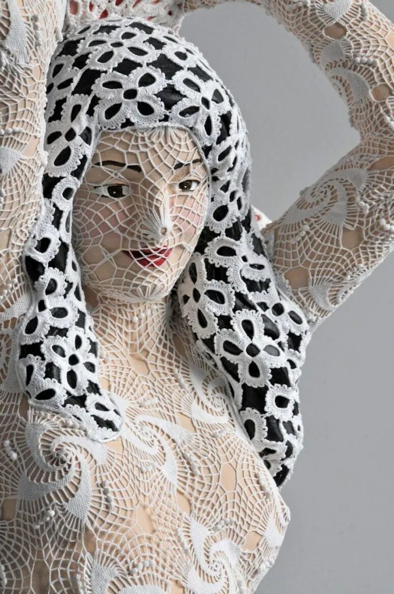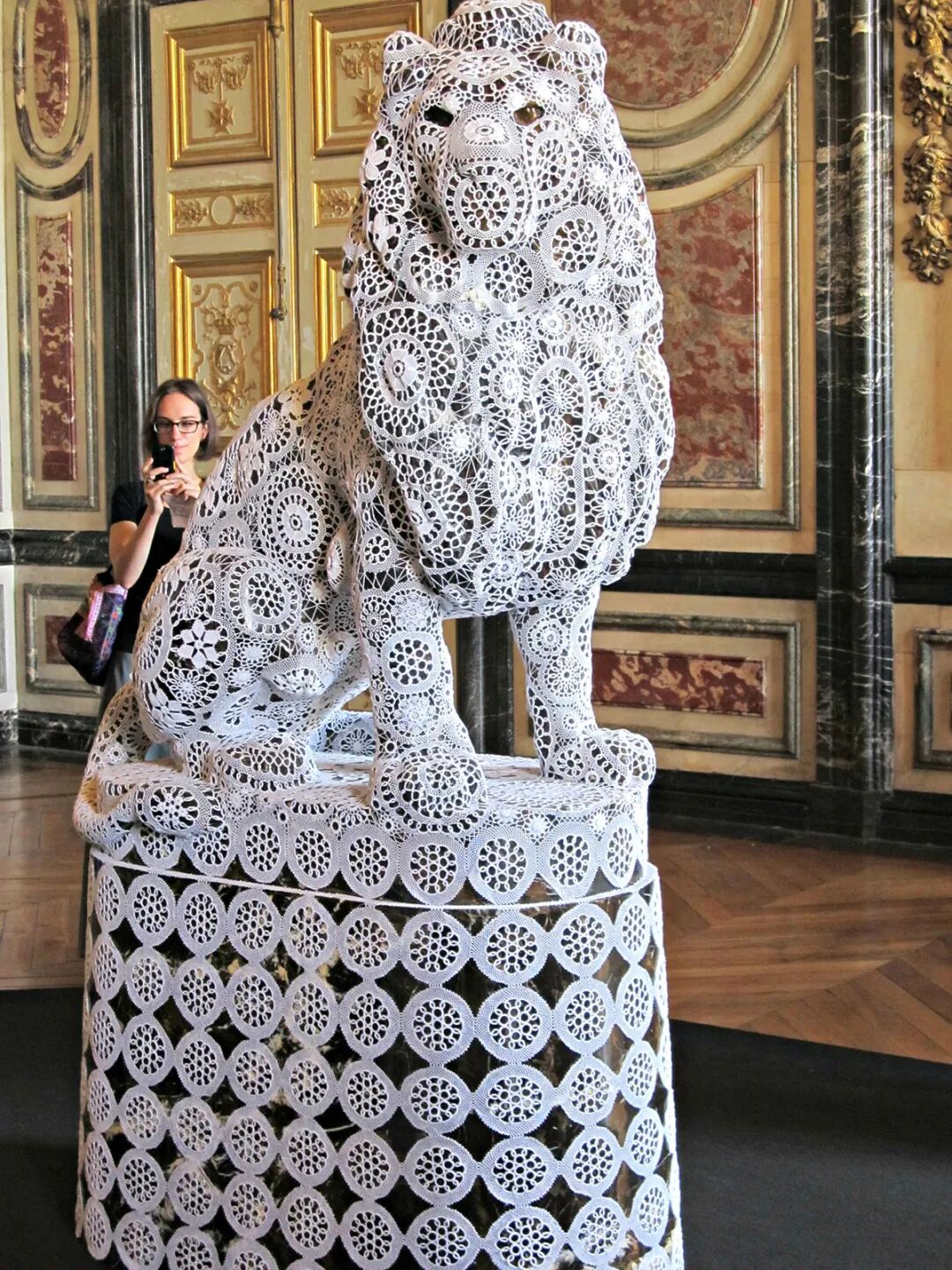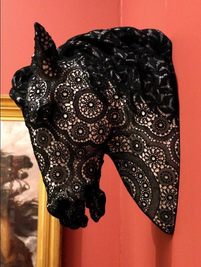 但是Joana Vasconcelos能成为在凡尔赛宫首位举办个展的女性艺术家,并非一蹴而就。因为政治避难原因,Joana的父母早年从葡萄牙来到了巴黎。1971年,Joana在巴黎出生了,长大后她回到了故乡,并在18岁那年就读于里斯本Ar.Co中心学习艺术和视觉传达设计。热爱艺术并有着超强动手能力的她,开始尝试将钩针编织、蕾丝融入她的视觉装置艺术创作中。这位手工艺术天才,直到2005年的威尼斯双年展上,她凭借作品A Noiva(新娘)开始引起世界的关注。