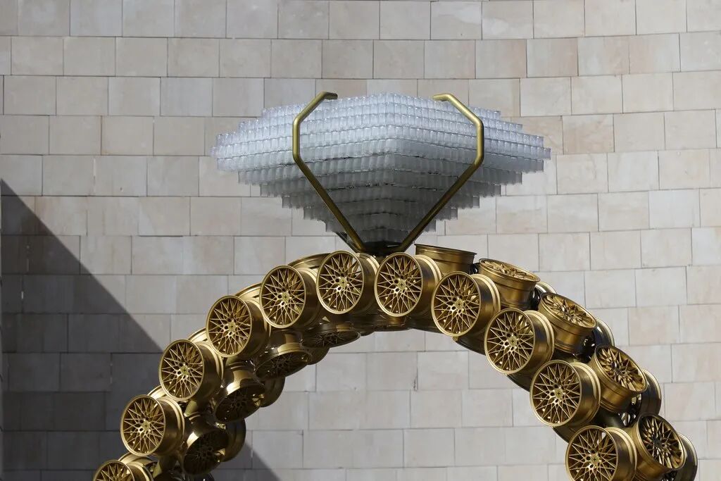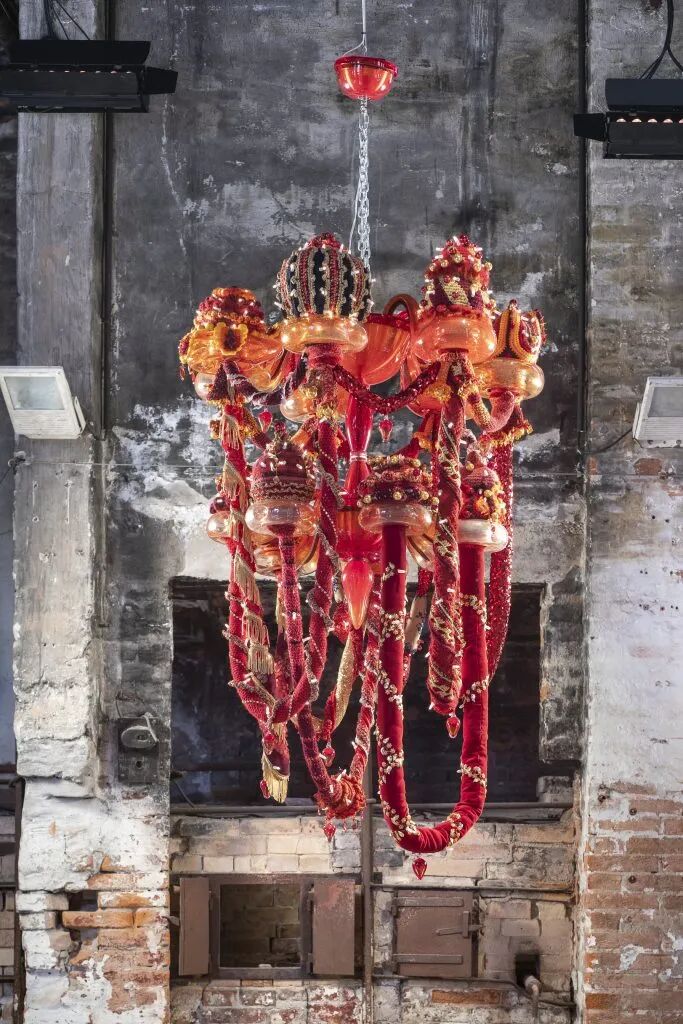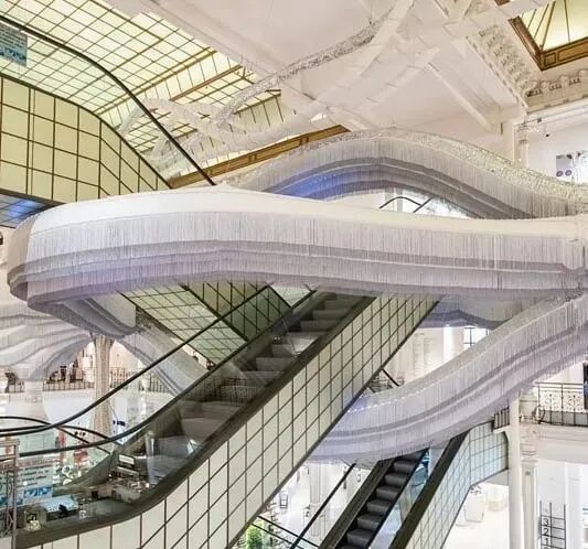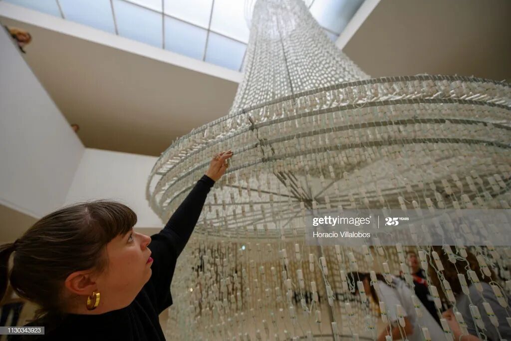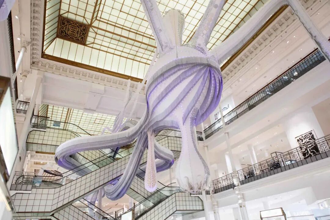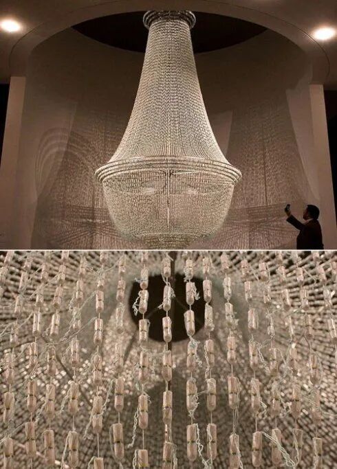 也就是文章开头提到的那款由25000个卫生棉条制成的“水晶吊灯”。构思、设计创造并制作每一件装置,都是需要耗费大量心血的。