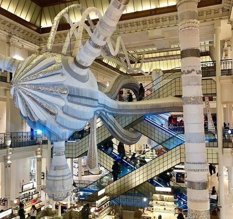 Joana那华丽如古典巴洛克风格,却带着一丝趣味,展现丰富想像力的摩登作品,着实让人在第一眼后便印象深刻。或许有的人认为其作品诡谲,甚至颠覆传统鉴赏品味,然而她那天马行空的巧思创作背后,绝非仅是为求吸睛而已。Joana作品中浓郁的女性主义气息,让她成为了葡萄牙最炙手可热的当代艺术家之一。她曾以自己最为著名的Valkyrie(女武神)创作系列为主轴,为巴黎Le Bon Marché乐蓬马歇百货,谱出了一个以法国两位杰出女性主义先锋西蒙·波伏娃(Simone de Beauvoir)和西蒙·韦伊(Simone Weil)为命名灵感,盘据整幢大楼空间的奇幻艺术装置《Simone》。Joana天马行空的创意,让这座陪伴老巴黎人度过无数美好时光的空间,顿时成了科幻电影里的场景,太酷了有没有~