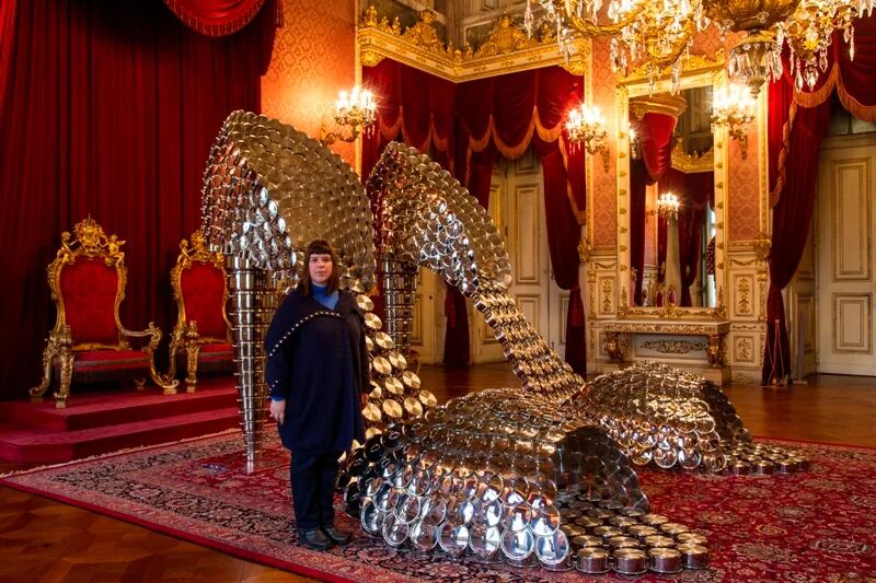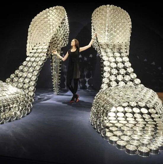 绝了!她用平底锅做高跟鞋,卫生棉做吊灯,还受邀在凡尔赛宫办展?!