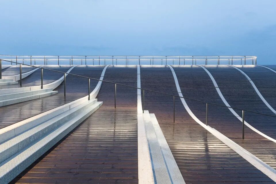 威士忌酒厂设有三座工业生产建筑,呈长方形,坐落于酒厂北侧。屋顶线条随自然坡势平缓下落,亦层层递减,与缓坡相互平行。![]()