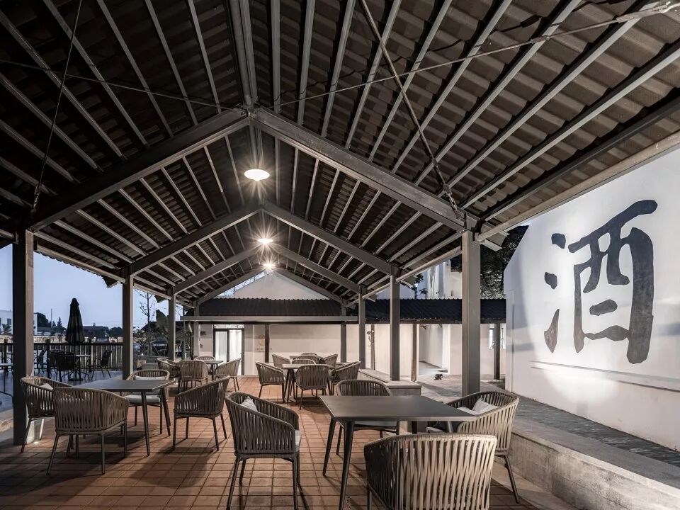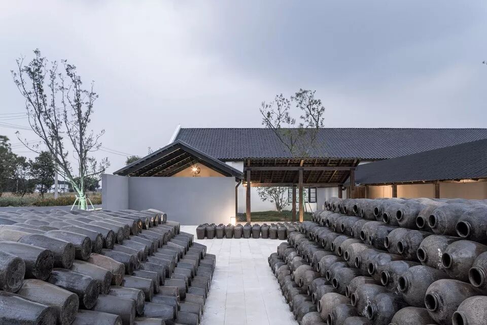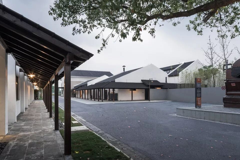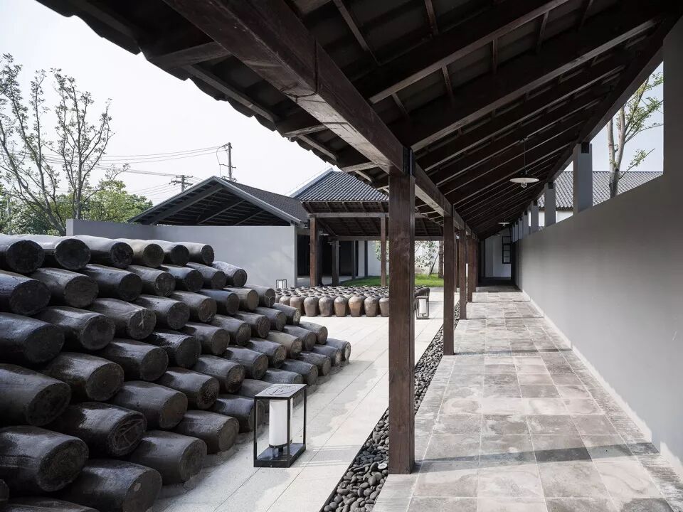 酒厂原有建筑是一系列典型的长形厂房空间。在设计中并没有对厂房本身做过多的改变,放弃对“形”的塑造,转而为每个既有的建筑营造恰当的周边环境,而去改变周边环境,就一定能改变建筑。改造更新后的周庄酒厂保留了黄酒生产的部分,新增了展览、体验及餐饮等功能,成为新的万三酒庄,为周边的年轻人提供了新的工作机会。