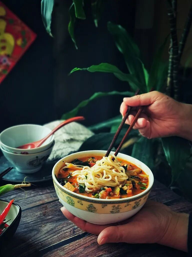 中国北方一些不产或少产大米的地方,人们不吃腊八粥,而是吃腊八面。前一天用各种果、蔬做成臊子,把面条擀好,到腊月初八早晨全家吃腊八面。![]()