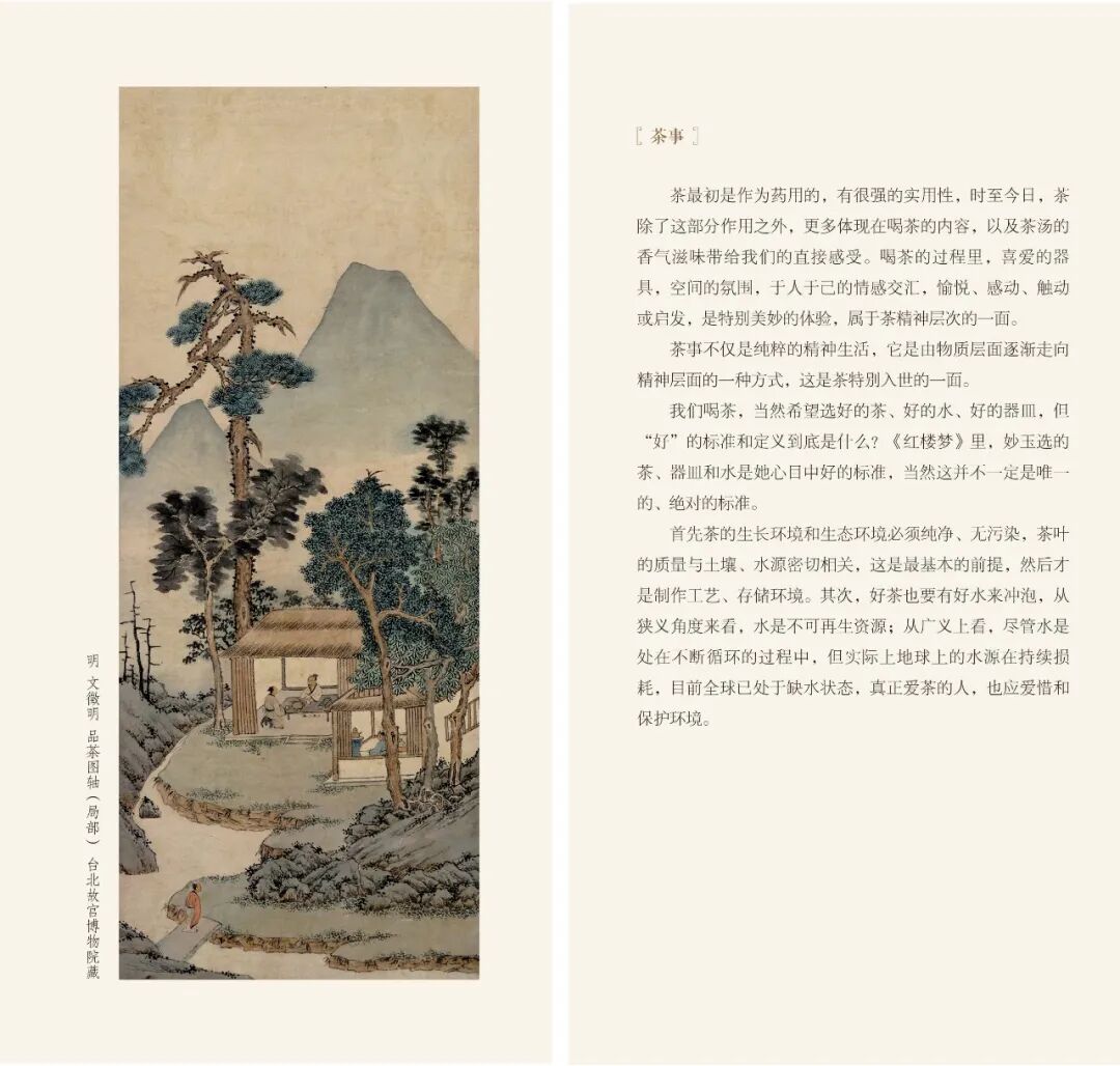 陆羽最早提出,茶“为饮最宜精行俭德之人”,直指以茶事求真,但后来人更在此基础上,将茶事发扬为在生活中激发人的审美和悟道之途了。