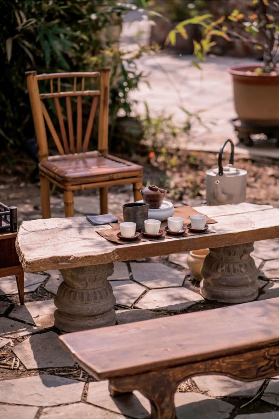 老古告诉我们:即便身处高楼大厦,也可以在窗户旁的书桌上铺好茶席,插上喜欢的应季花草,或者摆上自己用心培育的小盆景,喝喝茶,看看书,聊聊天,哪怕只是静坐,也能享受属于自己的宁静舒适。