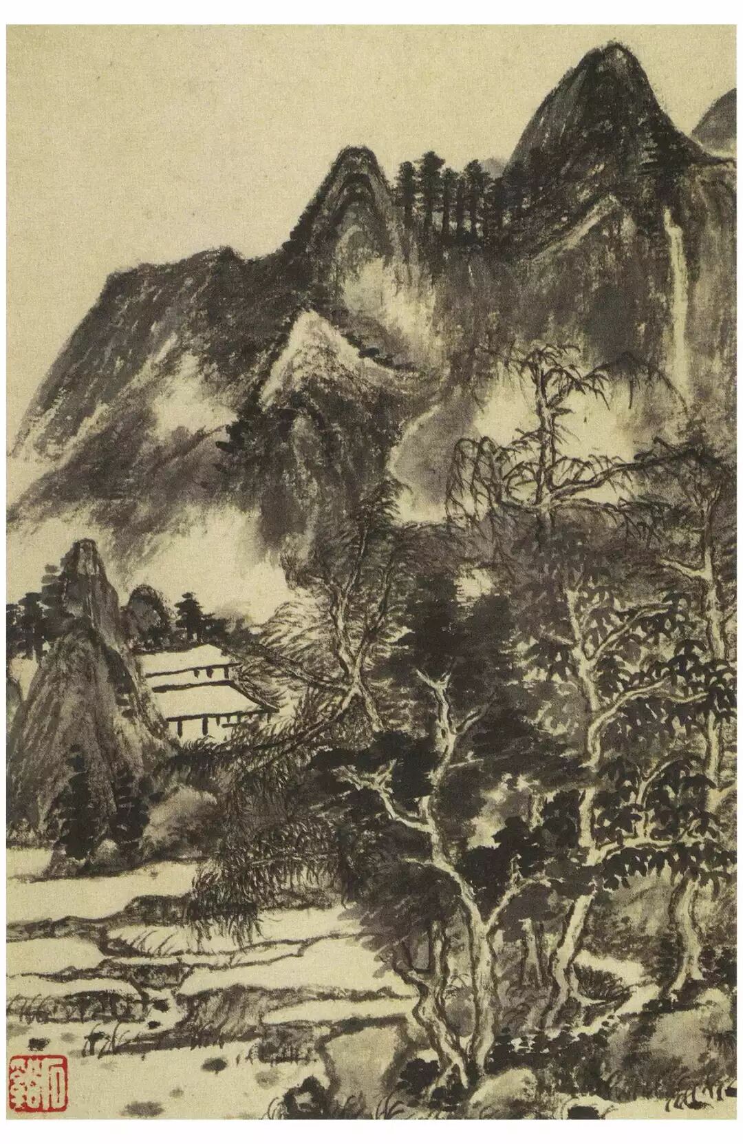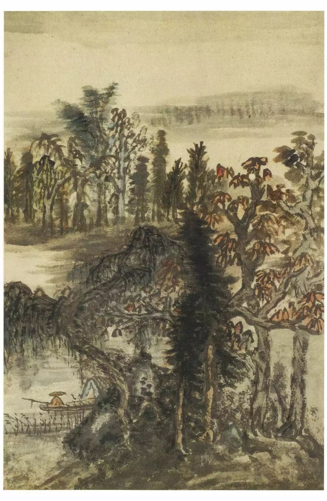 他笔下的山水,内里始终保持着一种深沉的纯粹,散逸抒情,当它呈现的时候,却如被阵雨般簇拥着,浑厚蓊郁,势不可挡,画面的生机毕露笔端。