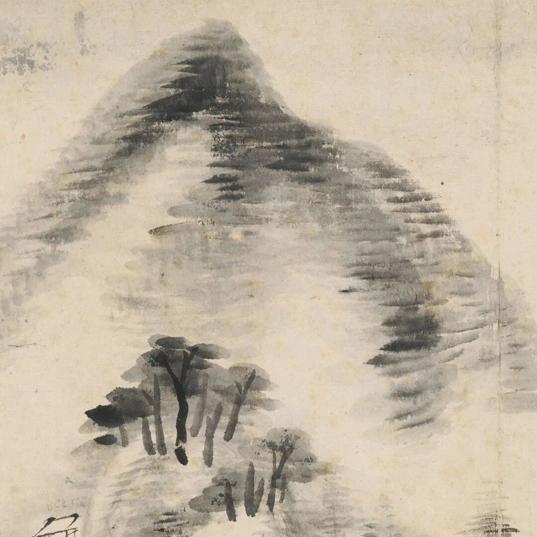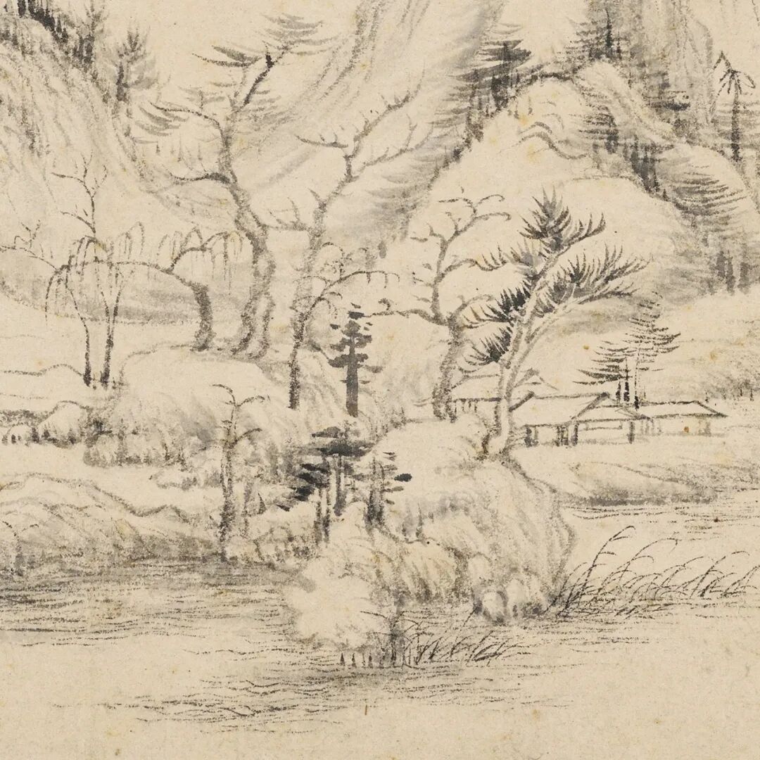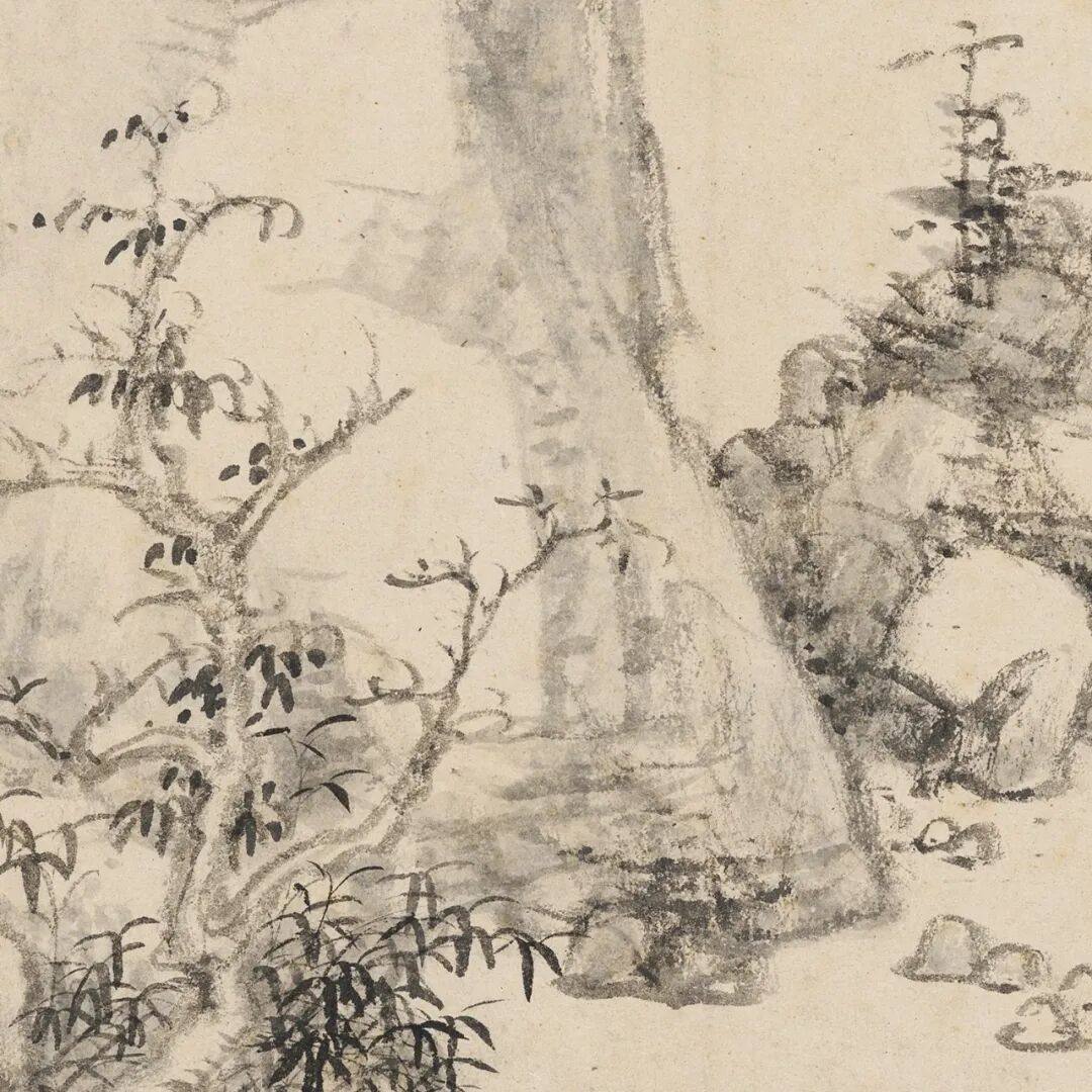 第五叶剪取梅华庵主《溪山无尽图》一片石耳。