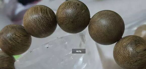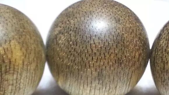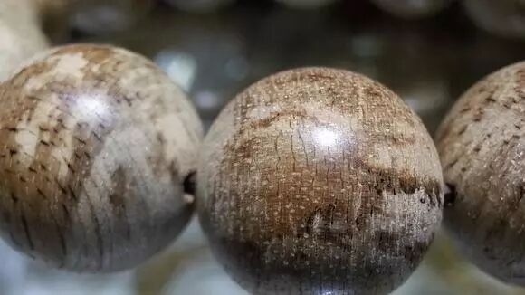 如上图,水磨后的圆形珠子还需要经过最后一道工序,就是用磨砂纸打磨抛光,让她表里如一,当然,磨砂纸切勿目数太高而且用力过猛,否则会留下抛痕,一串圆珠沉香,工序很多,不仅以上如此,请珍惜你的手串。![]()