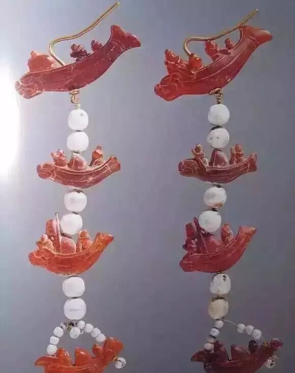 我国人敬重标志健康长寿的松树,自古以来对琥珀就特别喜欢。汉成帝的皇后赵飞燕有琥珀枕,能够在安睡时吸取芳香;陈后主花费千金为宠妃置办琥珀簪。在故宫博物院中也珍藏着很多宝贵的琥珀首饰和由琥珀雕刻而成的精巧鼻烟壶。我国早在新石器时代的遗址中就出土了琥珀雕刻的装饰物,尔后历经商周秦汉,它与古代玉器的开展形影相随。在湖南衡阳苗圃出土的秦汉期间的椭圆形金珠,珠外用金丝构成精巧的斑纹,一起还出土了水晶、玛瑙和用琥珀制造的狮、兔、鸟等雕刻件。![]()
