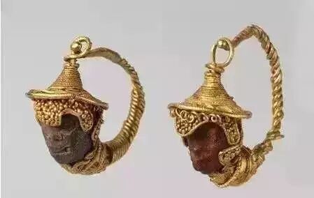 人脸蜜蜡原石金耳环,伊特鲁立亚,约公元前2-1世纪![]()
