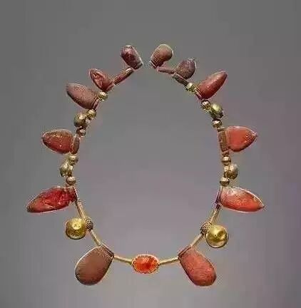 项圈,蜜蜡原石、金、玛瑙,意大利 伊特鲁立亚,公元前550-400年![]()
