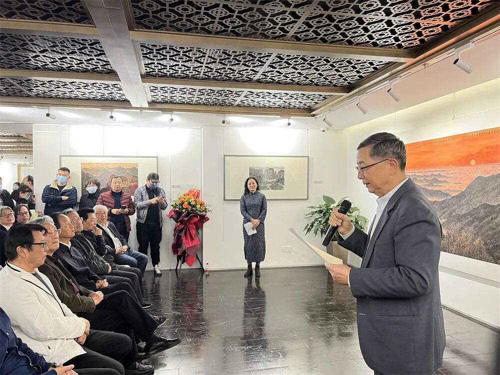 中国收藏家协会顾问、解放军原副总参谋长熊光楷上将为展览发来贺信,李孟言将军代为宣读。熊光楷上将在贺信中说:“崔晓东先生是我熟悉并喜爱的著名画家,他的作品大气蓬勃、宏伟壮阔,具有深厚的国家情怀、人文沉淀、历史韵底,体现了当代山水画融入古今、通贯中外的风格和气派,具有独特的鲜明的审美价值和精神高度。相信此次画展必将成为崔晓东先生艺术攀登之路上的一个新的坐标、新的起点。”