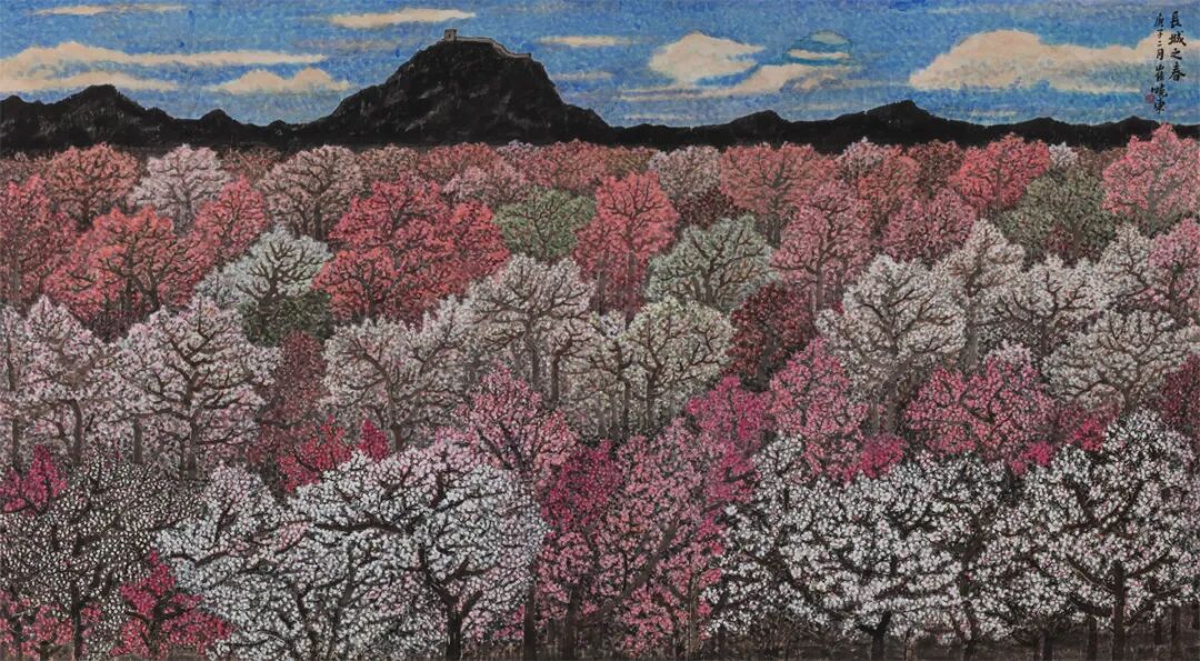 《春到长城》纸本设色 128×230cm 崔晓东 2020年