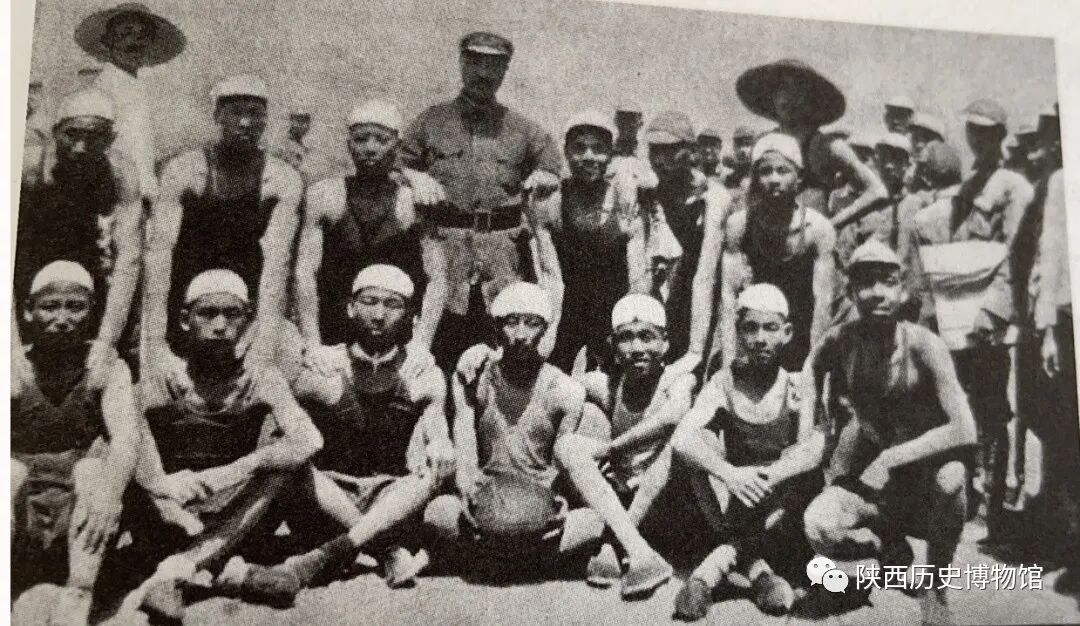 贺龙(二排中戴军帽者)与红三军篮球队合影