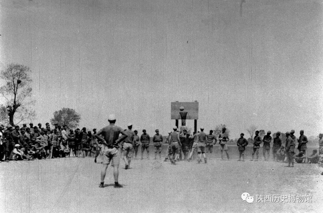 1936年5月1日,在陕西省正宁县宫河镇,红军干部、战士利用战斗间隙打篮球。