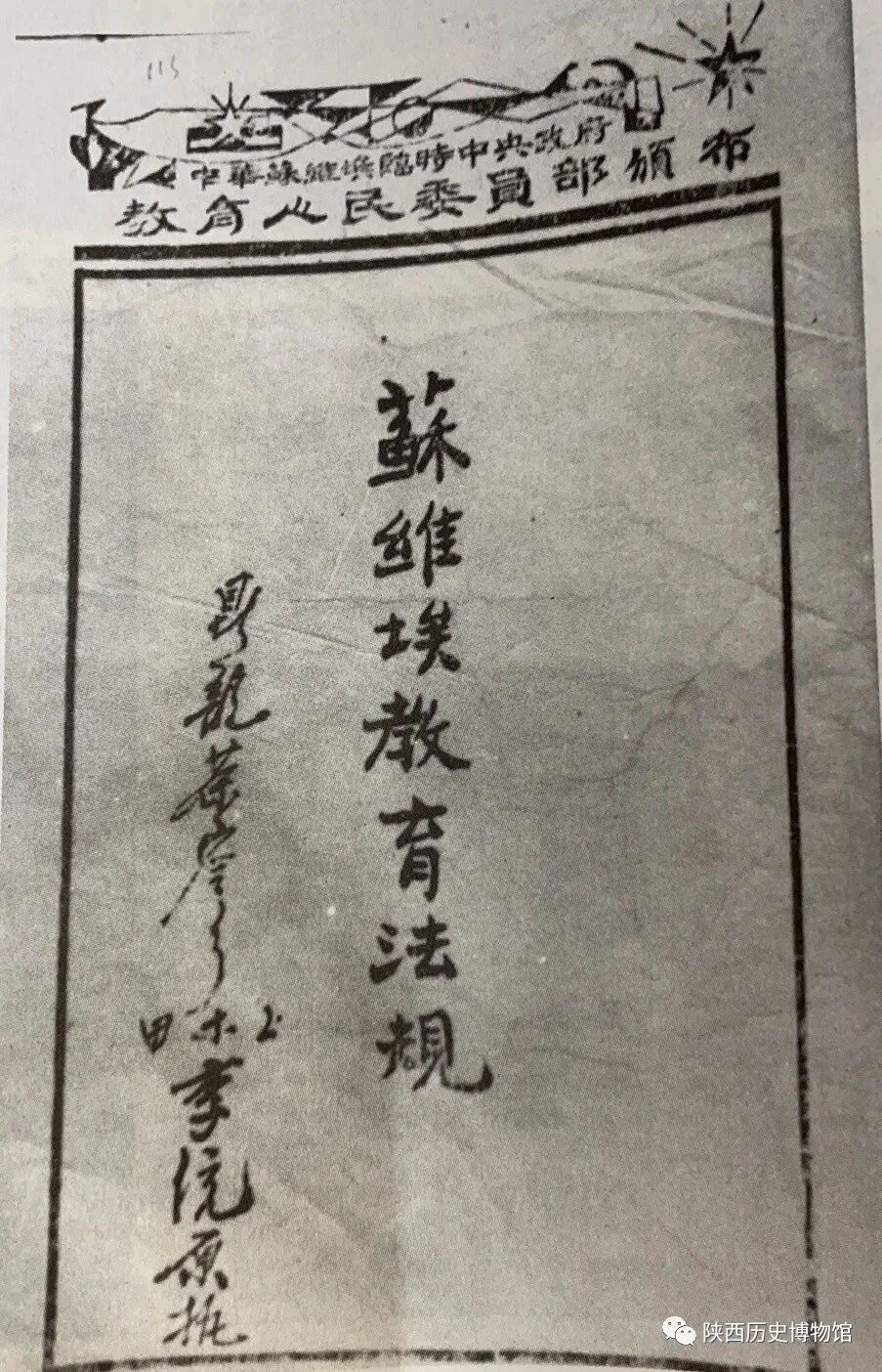 中央人民教育委员部颁布的《苏维埃教育法规》,其中对学校的体育运动场地、运动器材以及体育教学方法等均有明文规定。