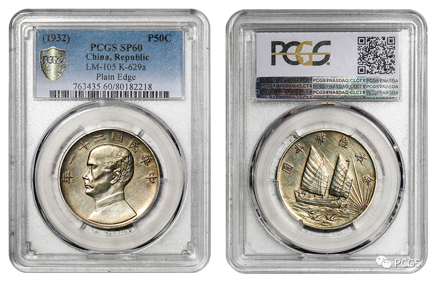 二、民国二十一年孙中山像背帆船下三鸟金本位半圆银币样币