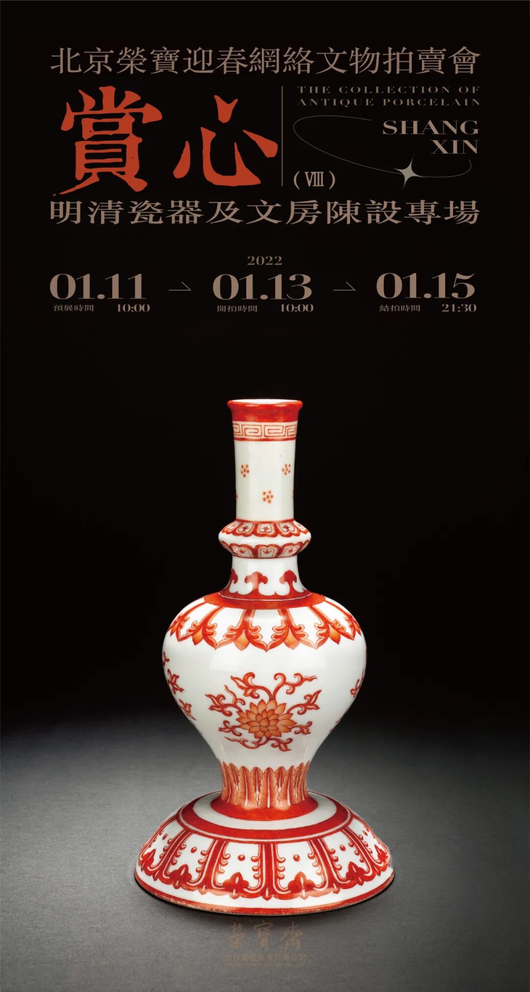 北京荣宝迎春网络文物拍卖会·赏心(Ⅷ)——明清瓷器及文房陈设专场将于1月11日10:00—1月13日10:00开启线上预展,并于1月13日10:00开拍,1月15日21:30结拍。