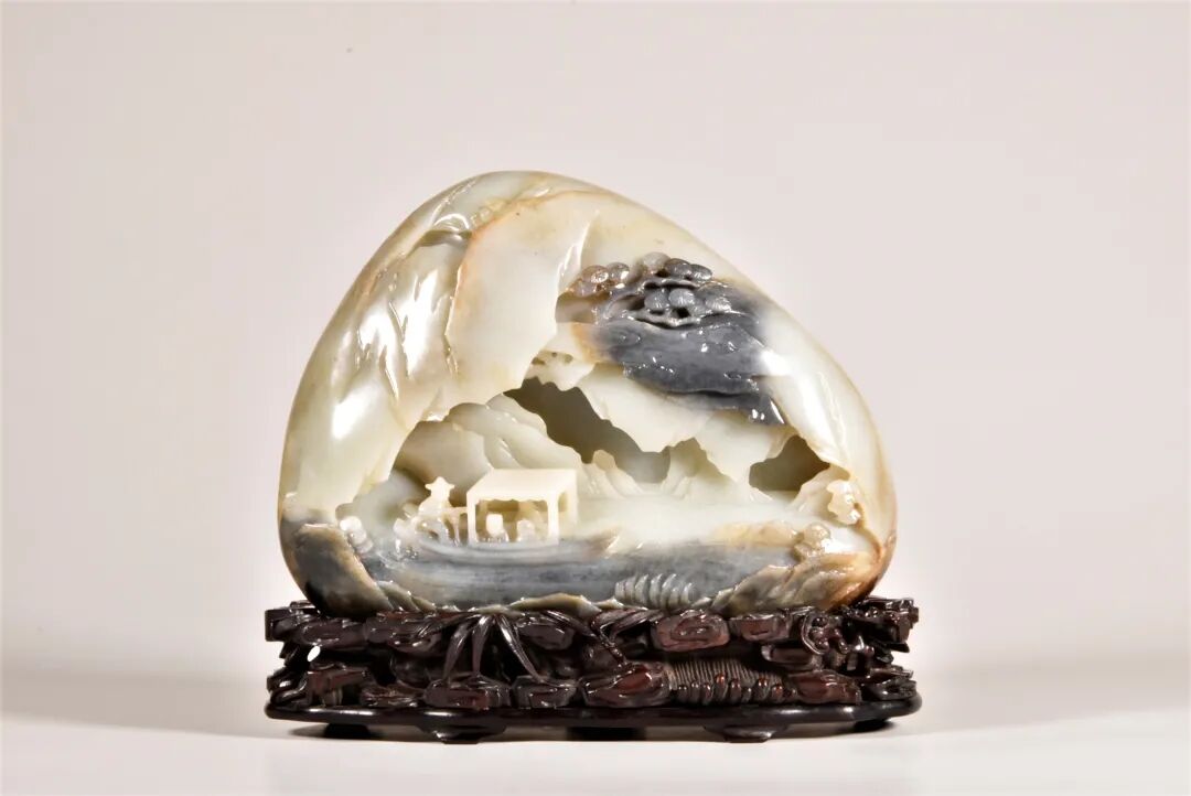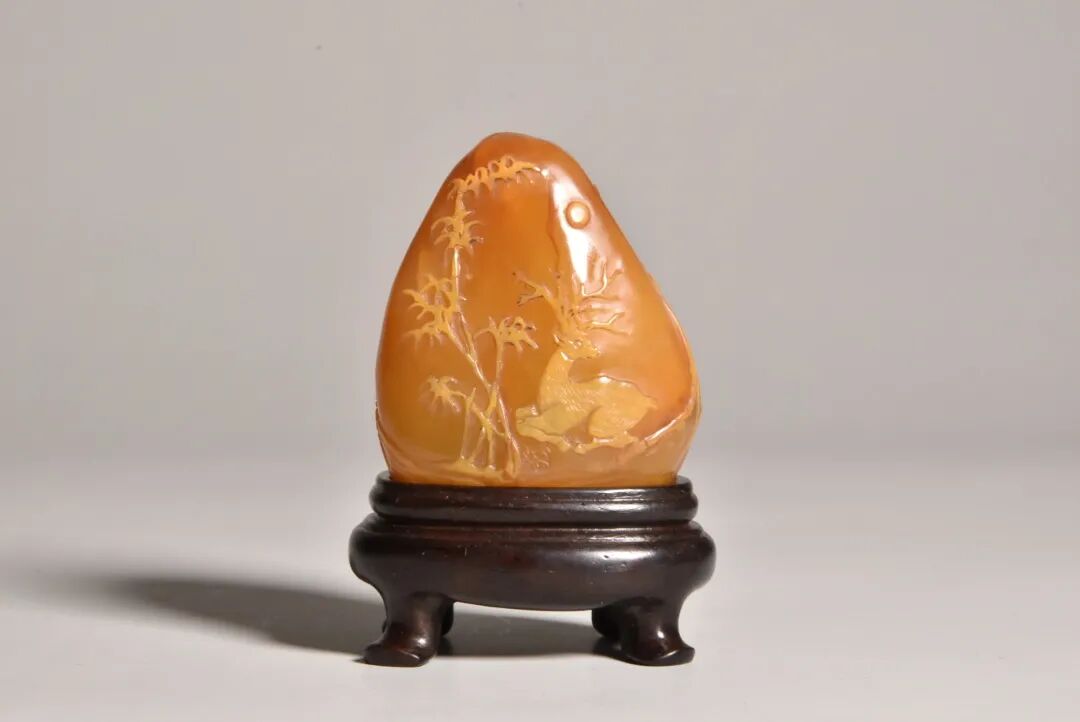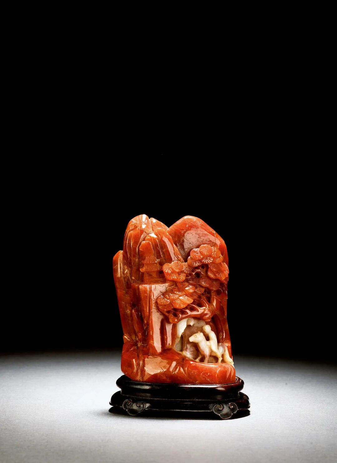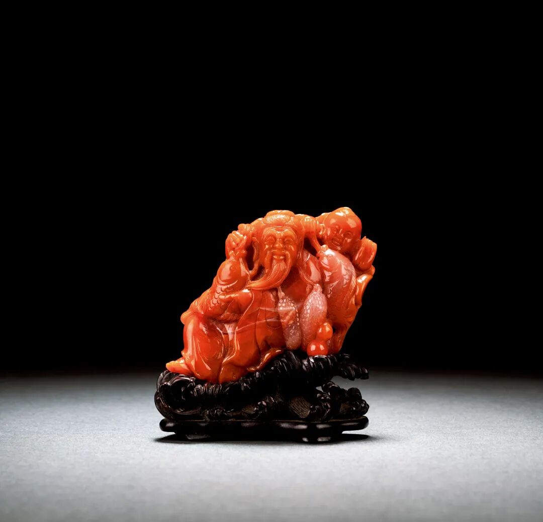 清 南红玛瑙巧雕「渔翁得利」摆件