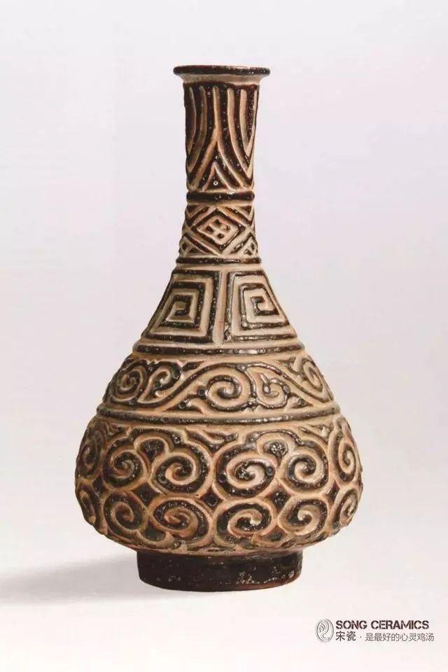 玫茵堂 元 莆田窑 褐釉刻剔犀纹瓶
