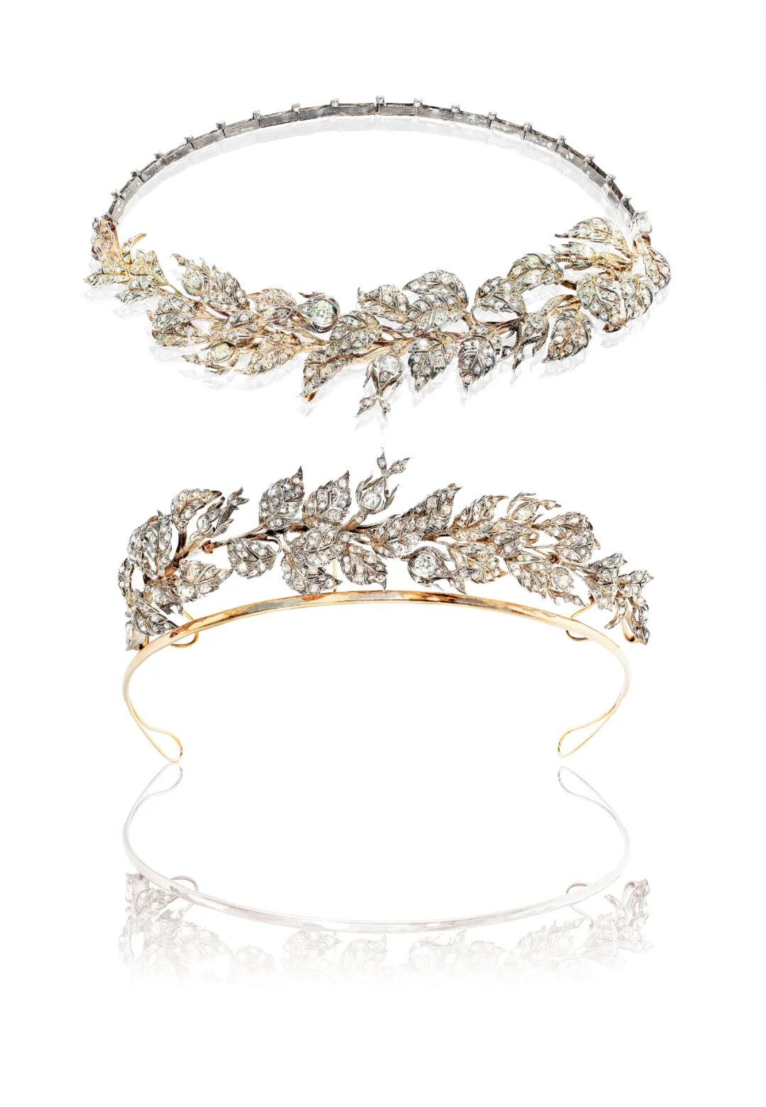 一顶精美华丽的冠冕,往往以结婚礼物的形式,随着淑女们一同出嫁,在名门望族中代代相传。冠冕也逐渐成为了代代相传的传统与祝福,而新娘佩戴冠冕也成了英国王室一种约定俗成的规定。每顶古董冠冕,都承载着无数传奇:它或记录一段浓情蜜意,或见证历史沧桑变迁,每每都引无数藏家竞相追捧。它可以拆卸,也能搭配发型和礼服,保证主人在任何场合都脱颖而出。精致冠冕的复兴,让冠冕成为财富和地位的象征,珠宝中浪漫唯美的典范。