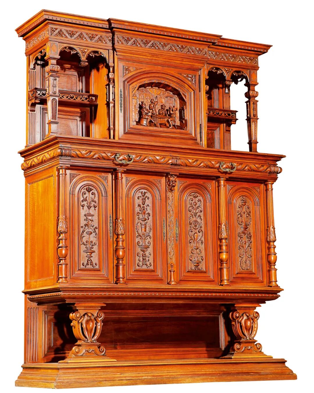 十九世纪制劳尔斯(T.Lauwers)立体雕刻画作文艺复兴风格人物饰高柜