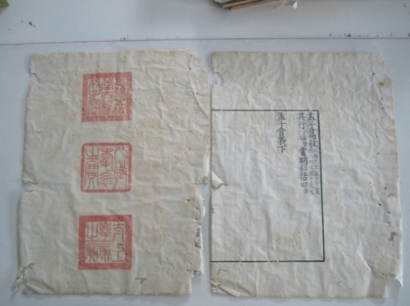 修复中我们发现,以上三部藏书都经前人修复过,且自前人修复后至今又都有不同程度的损坏。