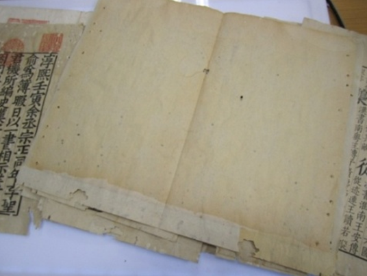 "天禄琳琅"藏书是清代宫廷所藏宋、元、明、清珍籍的精华,是中国古籍的奇珍。但是在200余年的岁月里,"天禄琳琅"藏书历经聚散转手,天灾兵变,很多已经破烂不堪,甚至是千疮百孔。据统计,存世"天禄琳琅"珍籍约600余部。清华大学刘蔷女士在其所著《天禄琳琅研究》一书中,对海内外"天禄琳琅"藏书的分布数量做了一个调查,结果显示:"收藏最多者依次为台北故宫博物院317部,中国国家图书馆270部,辽宁省图书馆35部。除去这三家单位,其它零星分散于海内外数十个公私藏家。"(1)关于国图所藏部分,据笔者了解应为279部。2013年,国家图书馆在对馆藏"天禄琳琅"珍藉进行整理及破损情况分析中发现,所藏279部3500余册古籍中约百分之十即300余册存在严重的纸张糟朽、絮化、粘连、装帧解体等问题。因破损严重,急需抢救性修复。