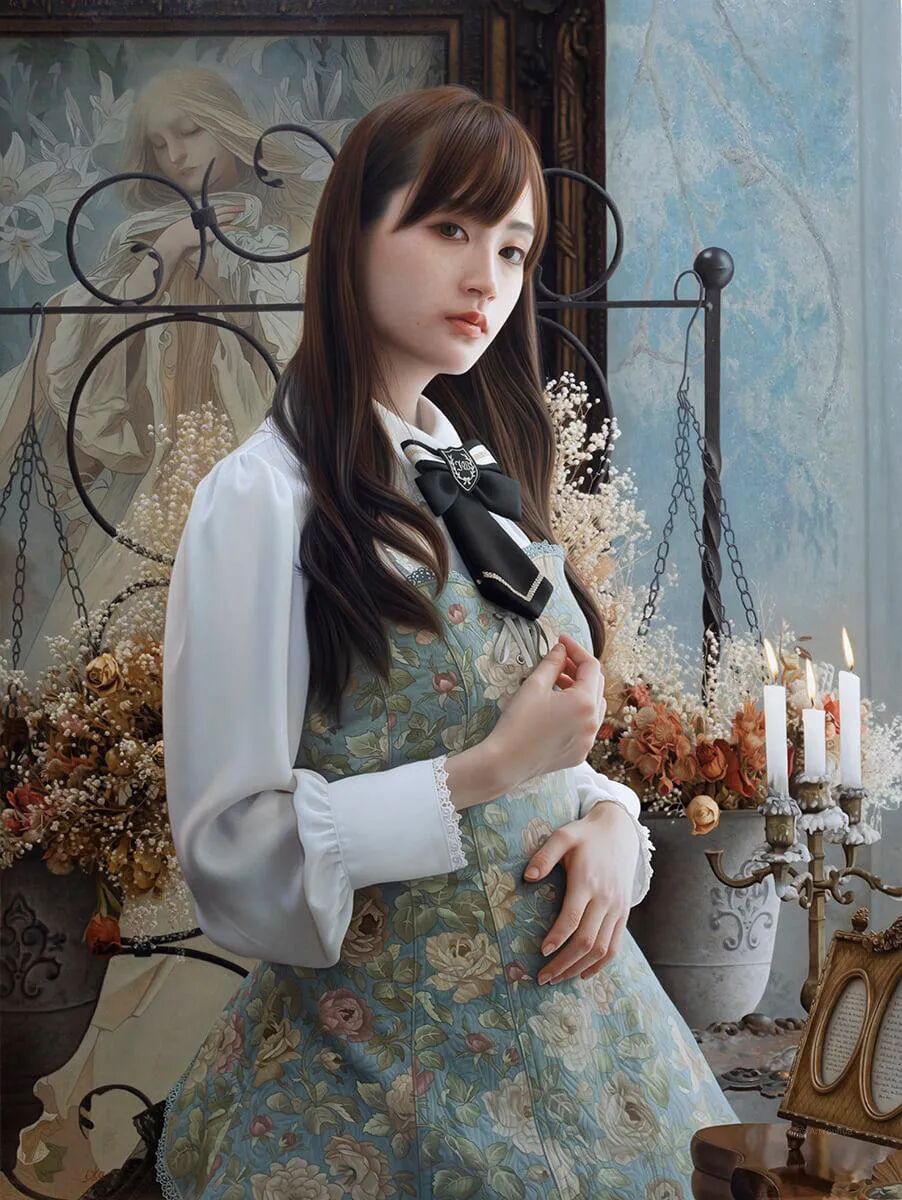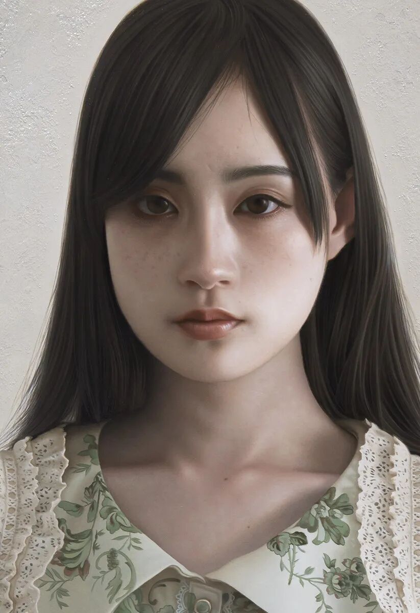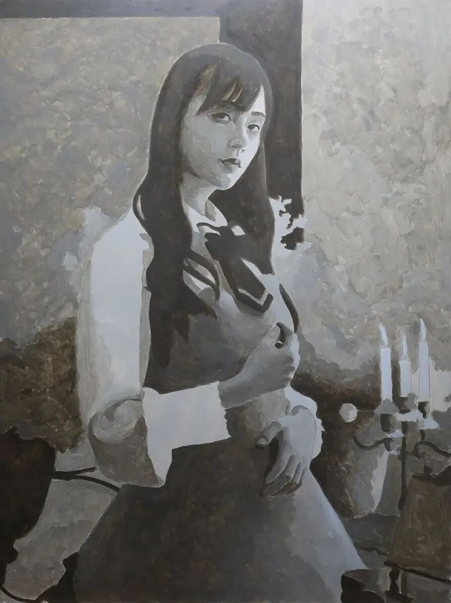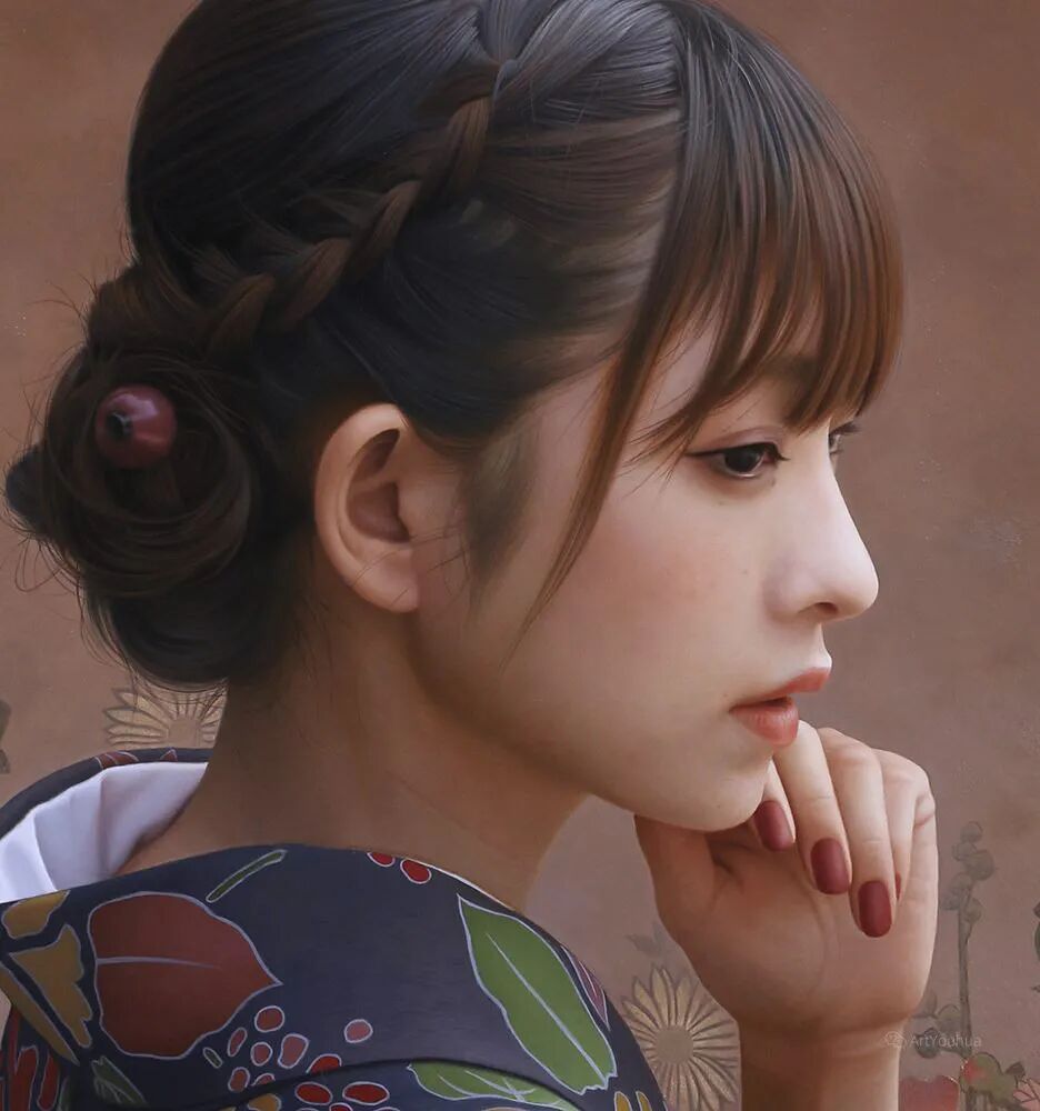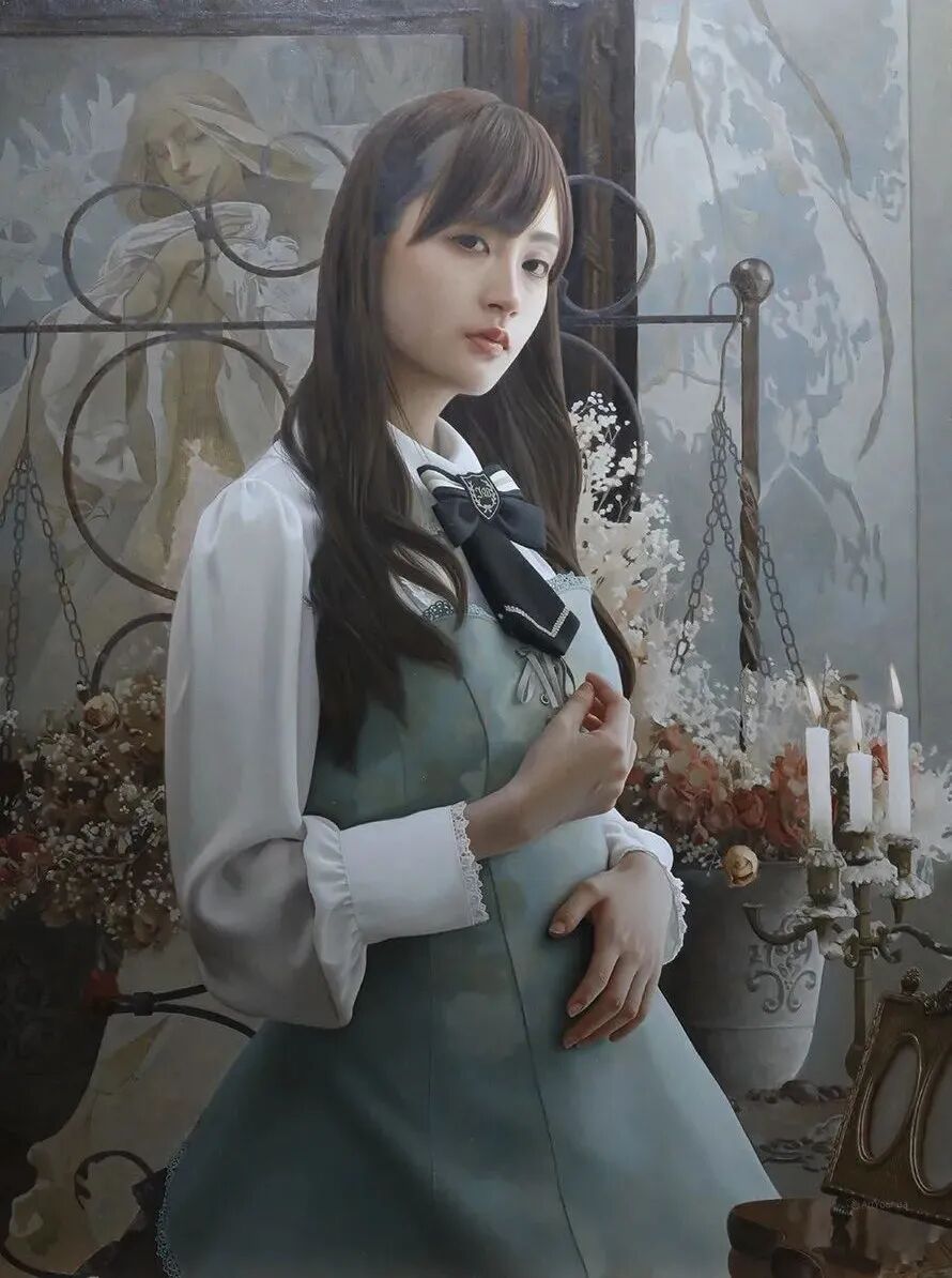 日本80后艺术家冈冈康夫有着极高的写实技巧,在日本的绘画界也是赫赫有名的,为日本超写实绘画第一人,有“日本冷军”之称。冈冈康夫的超写实绘画作品,细腻逼真,以善画少女著称,作品中的少女端庄,优雅高贵。