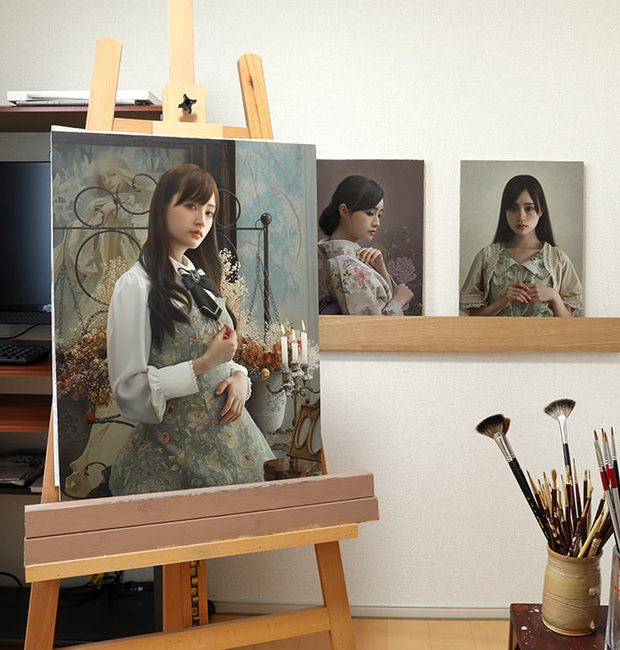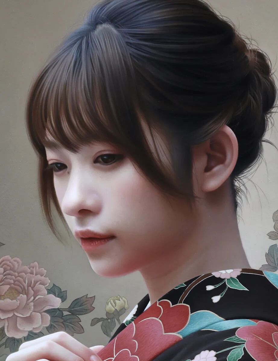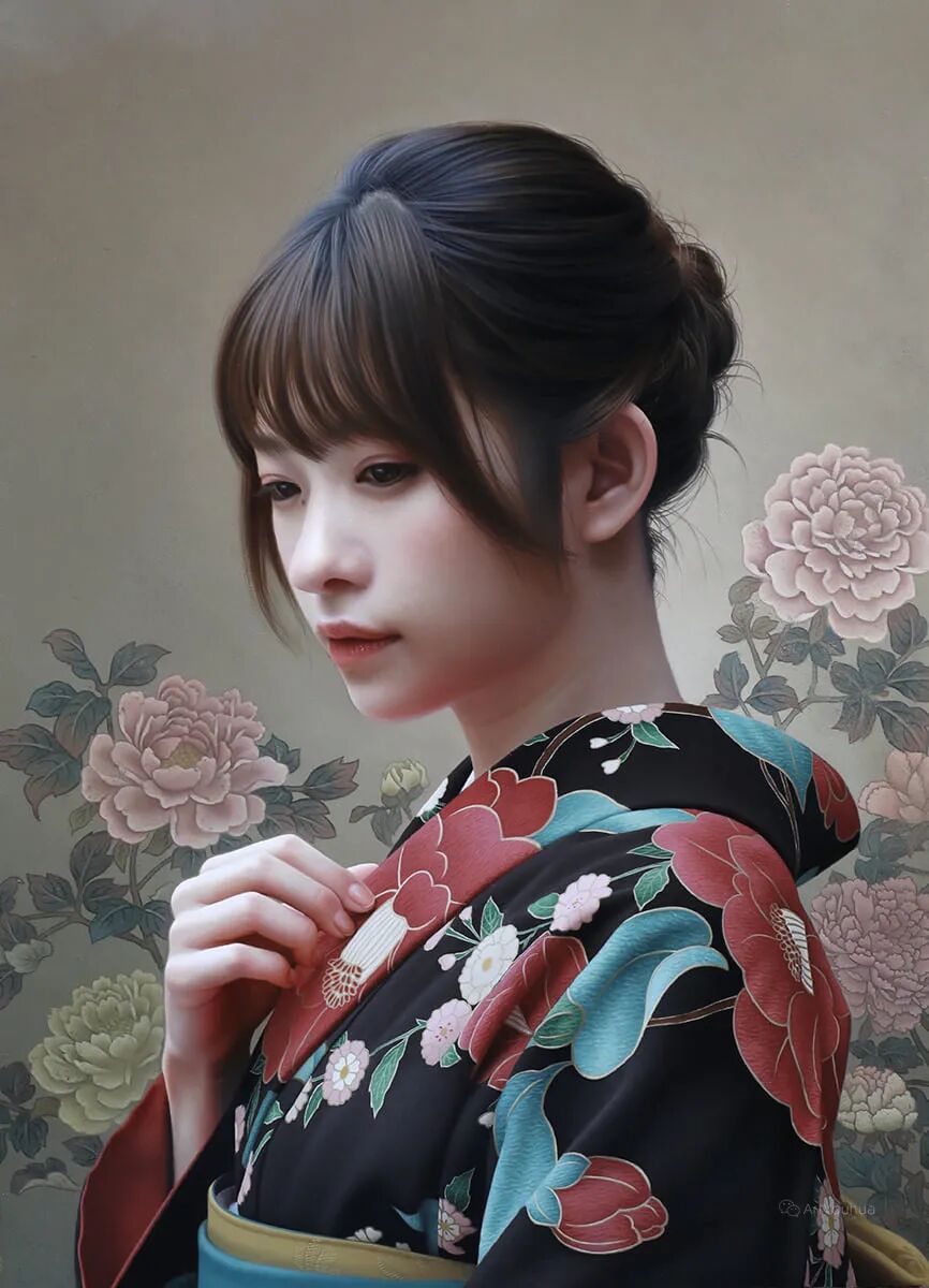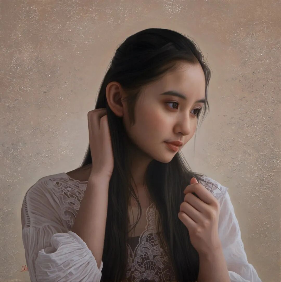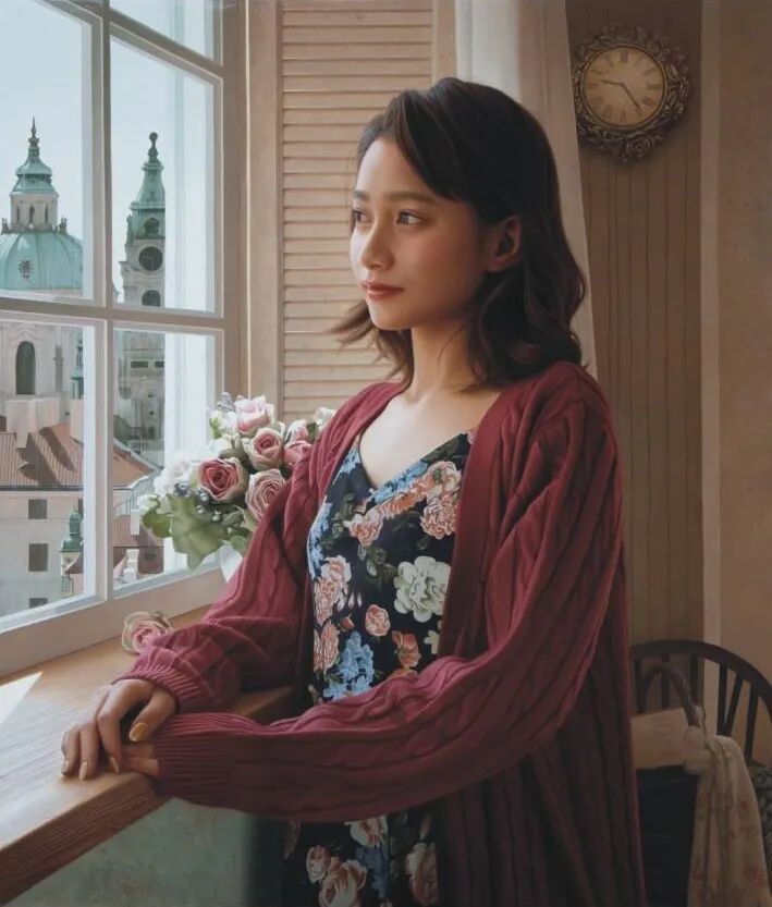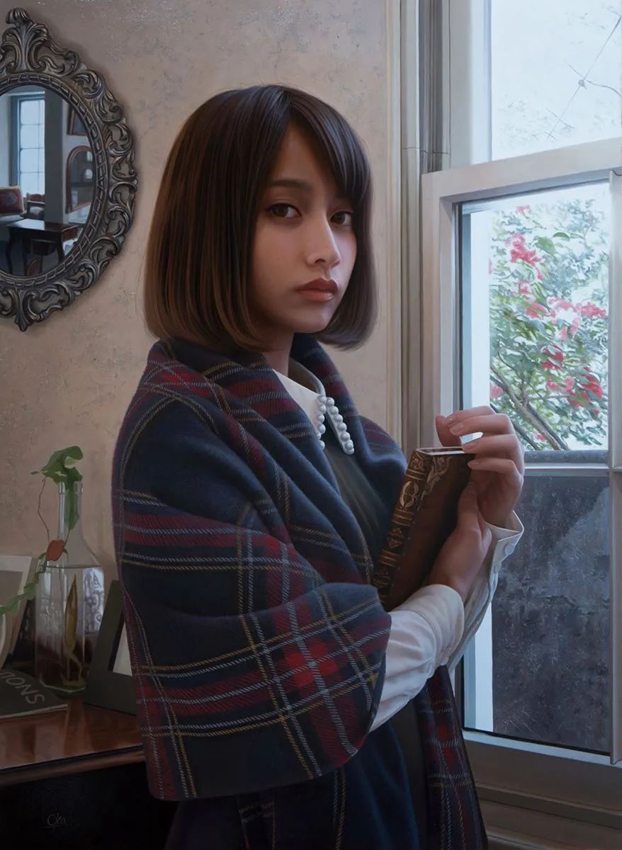 日本80后艺术家冈冈康夫有着极高的写实技巧,在日本的绘画界也是赫赫有名的,为日本超写实绘画第一人,有“日本冷军”之称。冈冈康夫的超写实绘画作品,细腻逼真,以善画少女著称,作品中的少女端庄,优雅高贵。