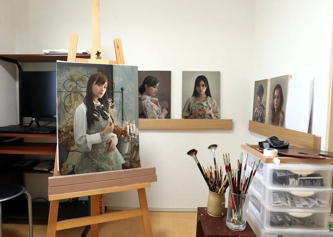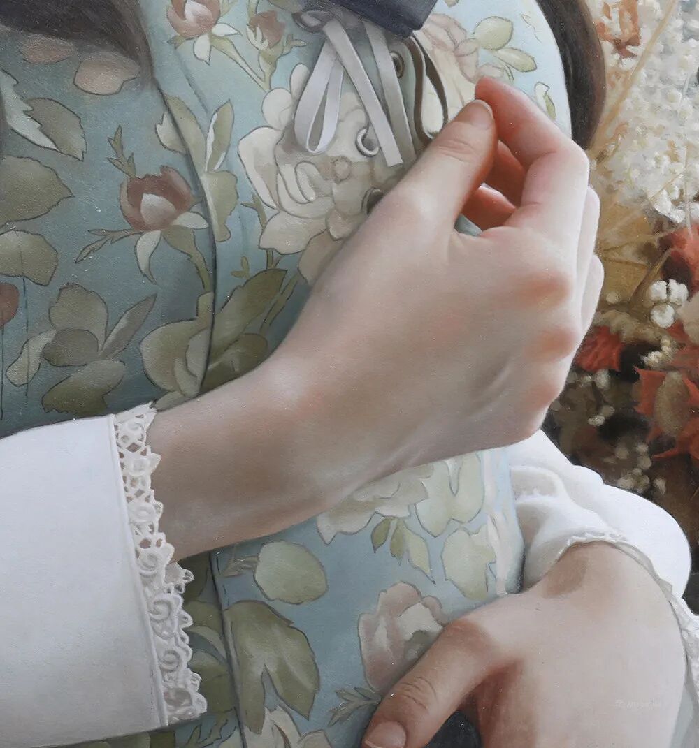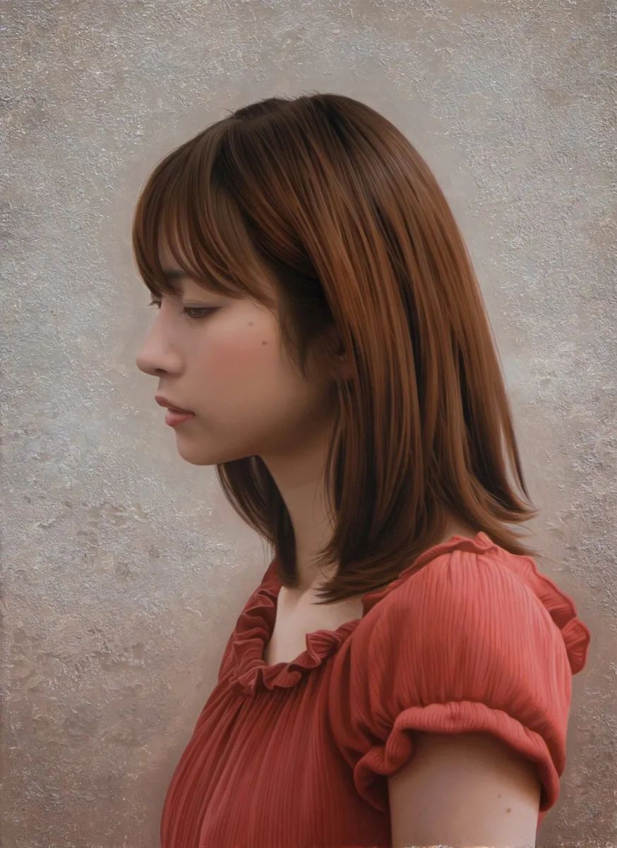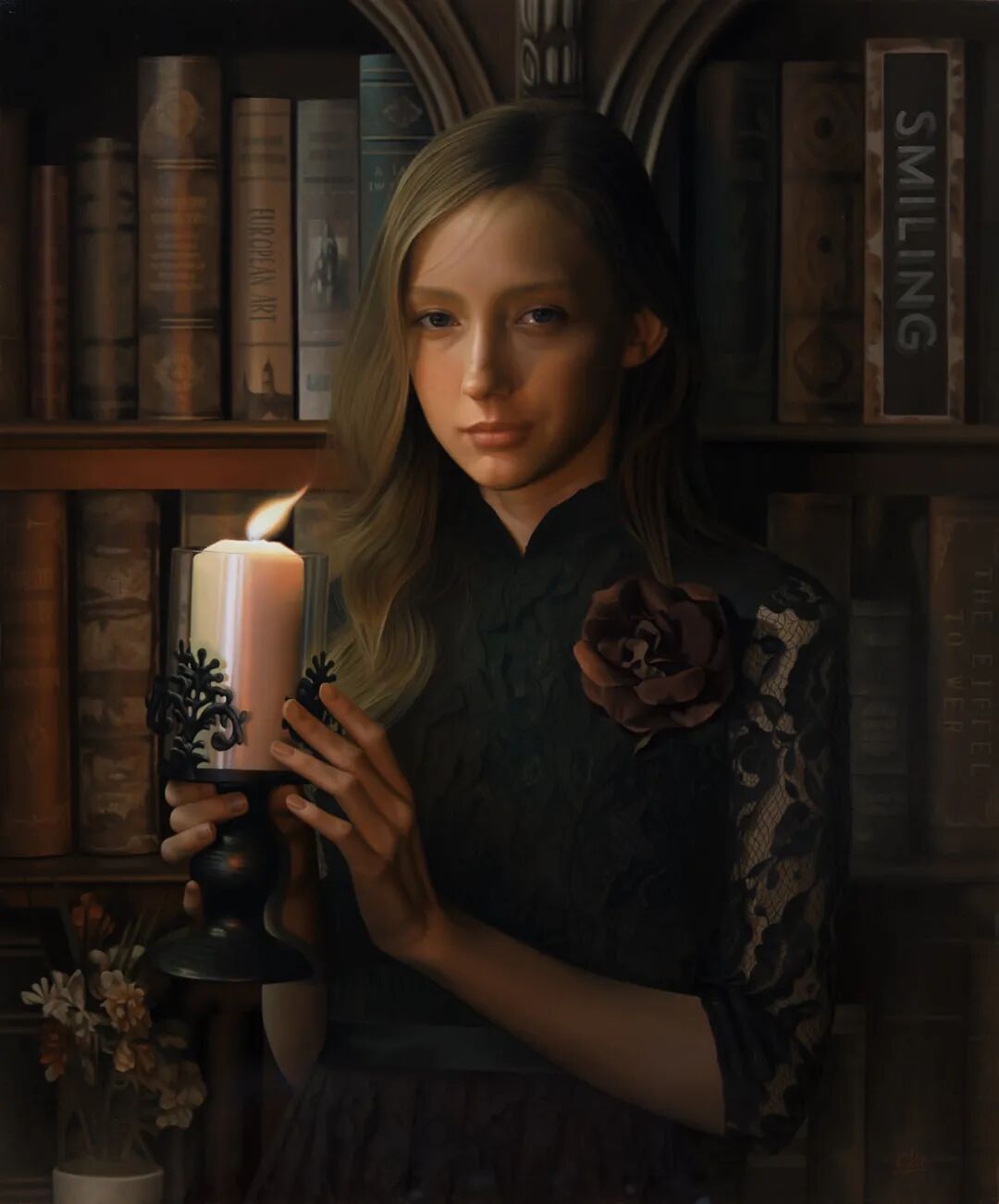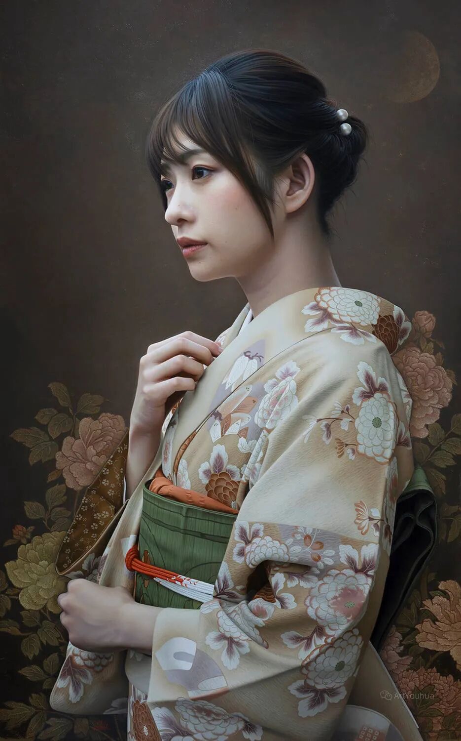 日本80后艺术家冈冈康夫有着极高的写实技巧,在日本的绘画界也是赫赫有名的,为日本超写实绘画第一人,有“日本冷军”之称。冈冈康夫的超写实绘画作品,细腻逼真,以善画少女著称,作品中的少女端庄,优雅高贵。