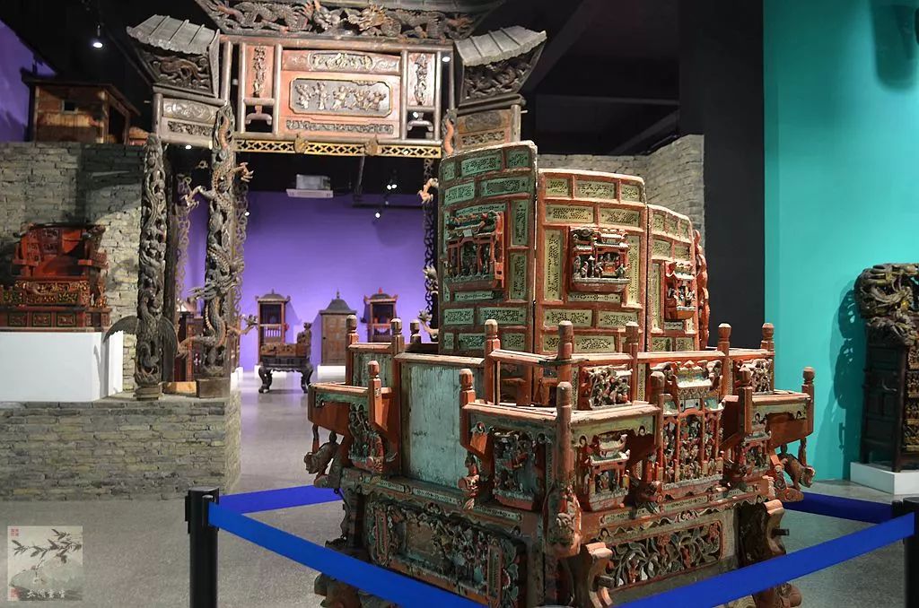 比如:木雕、佛像、佛龛、匾额、礼盒、官箱、竹编器具、家堂、轿子、筷子筷筒、木匠工具、洗脸架、屏风插屏、小孩子立箱立桶、面具、戏曲人物画像、各色木窗、中药抽屉箱,还有各种石雕、砖雕,楹联及石人石马等,多到让人目不暇接。