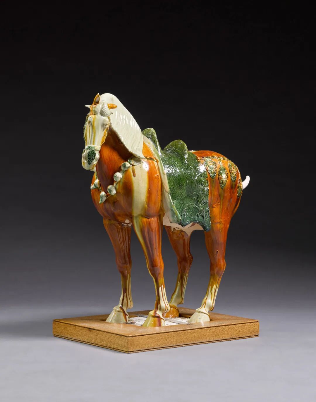 领衔此次拍卖为英国Ezekiel收藏,包含各式御瓷、玉器及文房清玩,由Marcus Ezekiel(1854-1927年)及其子Victor Ezekiel(1905-1976年)云集而成。二人均是二十世纪上半叶伦敦中国艺术收藏发展早期的领军人物,也是著名伦敦东方陶瓷学会重要成员。Marcus Ezekiel(1854-1927年)收藏《中国艺术国际展览会》,英国皇家艺术学院,伦敦, 1935-36年,编号2251《龙隐:东方陶瓷学会会员稀珍藏品展》,东方陶瓷学会,伦敦,2016年,编号202Victor Ezekiel(1905-1976年)收藏Victor Ezekiel(1905-1976年)收藏《中国艺术国际展览会》, 英国皇家艺术学院, 伦敦, 1935-36年,编号1885《The Ceramic Art of China》,东方陶瓷学会,伦敦,1971年,编号189《龙隐:英国东方陶瓷学会会员珍藏品展》,东方陶瓷学会,伦敦,2016年,编号12此次拍卖并呈献出自 Dr. David Ho(1911-1986年)收藏的精选书画和珍玩,焦点为一件汉桂宫铜雁足灯。陆增祥,《八琼室金石补正》,1925年,卷2,第6页柯昌泗,《谧斋金文拓本》,1931至1941年,胶州柯氏手写并粘拓本罗振玉,《贞松堂集古遗文》,1931年,卷13,第25-26页刘体智,《小校经阁金文拓本》,1935年,卷11,第95页福开森,《历代著录吉金》,上海,1939年,编号1118此次拍卖另呈献多幅出自欧洲私人收藏之书画,以五幅林风眠佳作为焦点,于1960年代初期由前挪威驻上海总领事顾德逊(1916-1968年)在上海直接购自艺术家本人。承接上季佳绩,本次拍卖今秋欣呈一件体型硕大、造型精美的唐三彩马,源自英国私人收藏。另外焦点为两件重要私人收藏的宋瓷珍品,以及一件气势恢宏的清乾隆粉青地粉彩瑞芝番莲纹天球瓶。宋/金 磁州窑绿釉墨彩牡丹纹卷口瓶