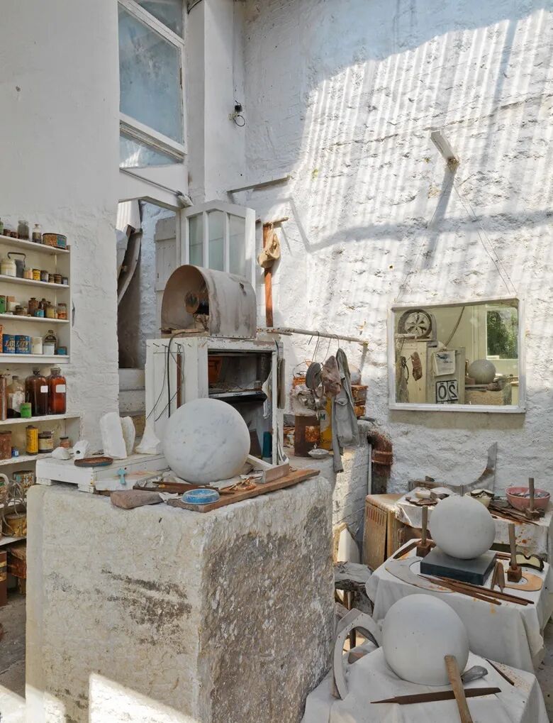 芭芭拉赫普沃斯于康沃尔的石材工场。照片 Tate (Marcus Leith 和AndrewDunkley),2011年。艺术品: Bowness
