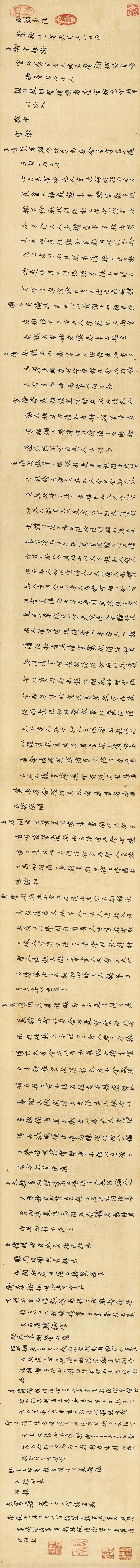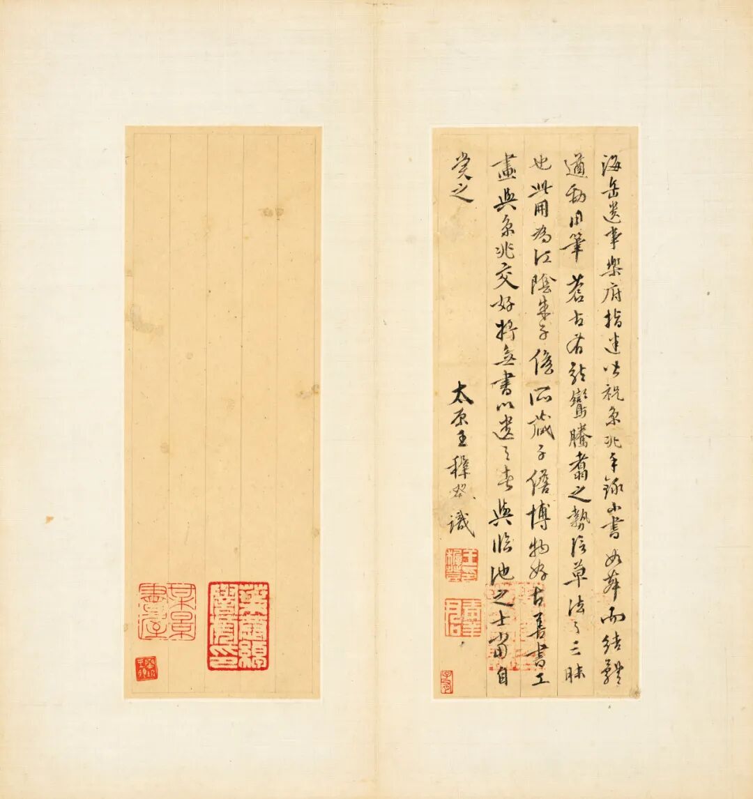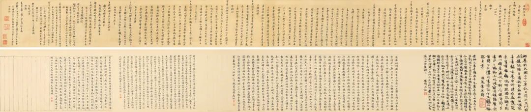 初彭龄,字绍祖,号颐园,山东莱阳人,清乾隆四十五年(1780)进士,官至工部尚书。此卷清乾隆间为初彭龄所得,秦瀛、光昭、陈鹤于嘉庆年间,俱有题跋。陈鹤跋中谓当时有“无锡秦小岘”题辞,今不复见。而叶恭绰题跋在诸家之前,知此卷或为叶氏重裱。初颐园后,书法又归道光间太谷孙阜昌所有,至民初为叶恭绰得于吴门,庋藏不啻珍宝。