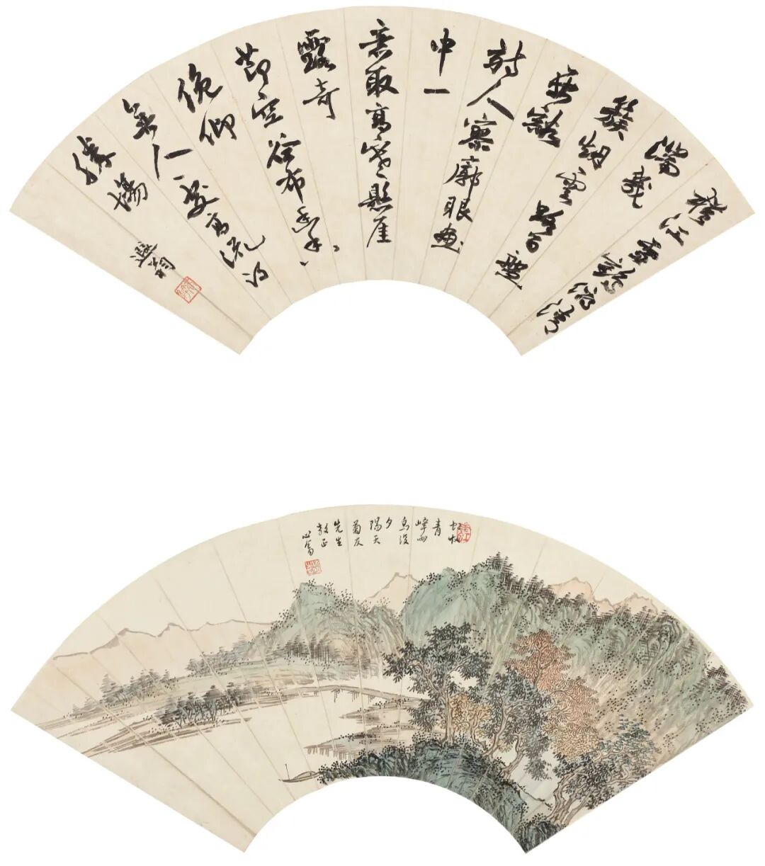 设色/水墨纸本 扇面双挖立轴