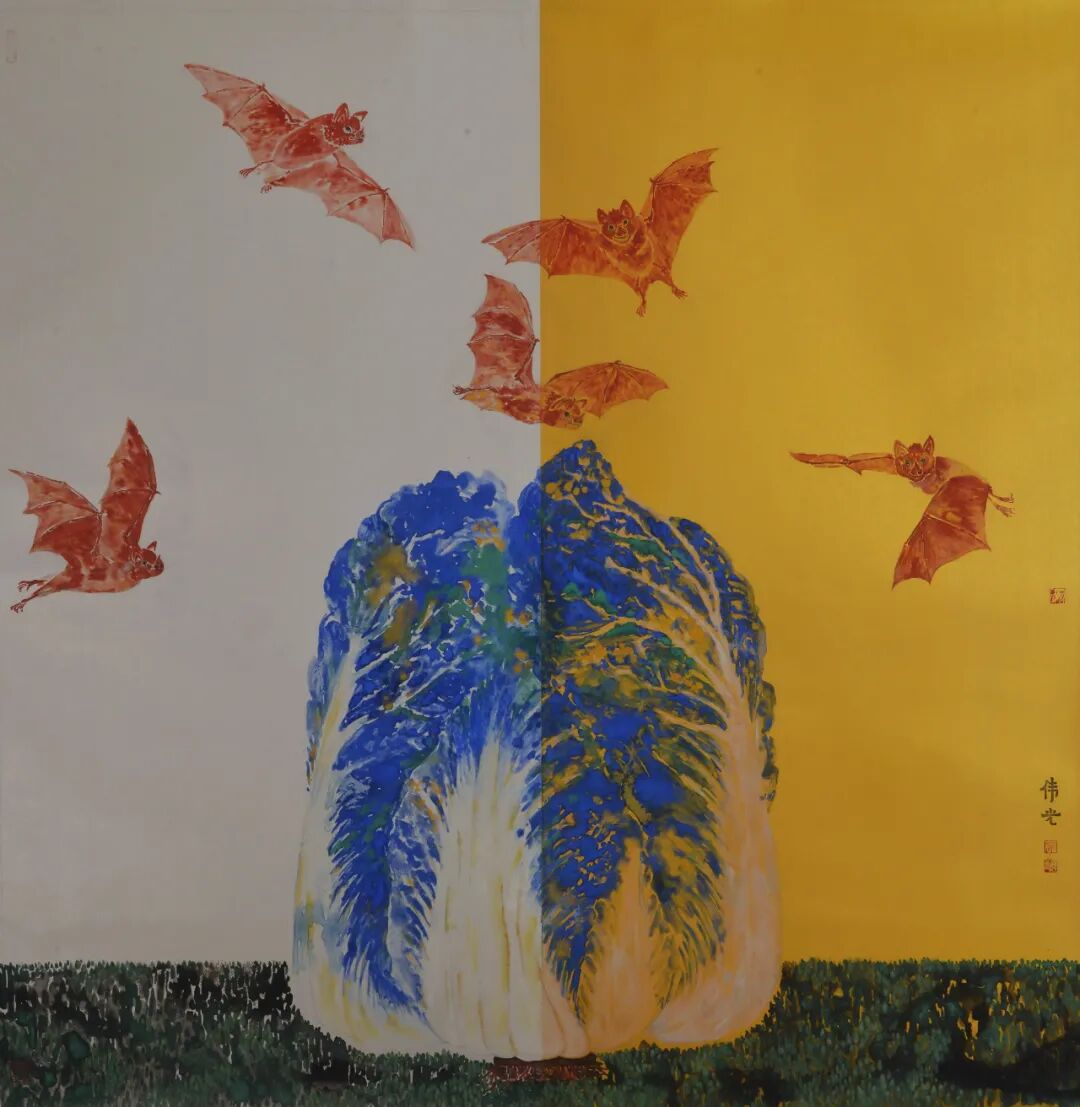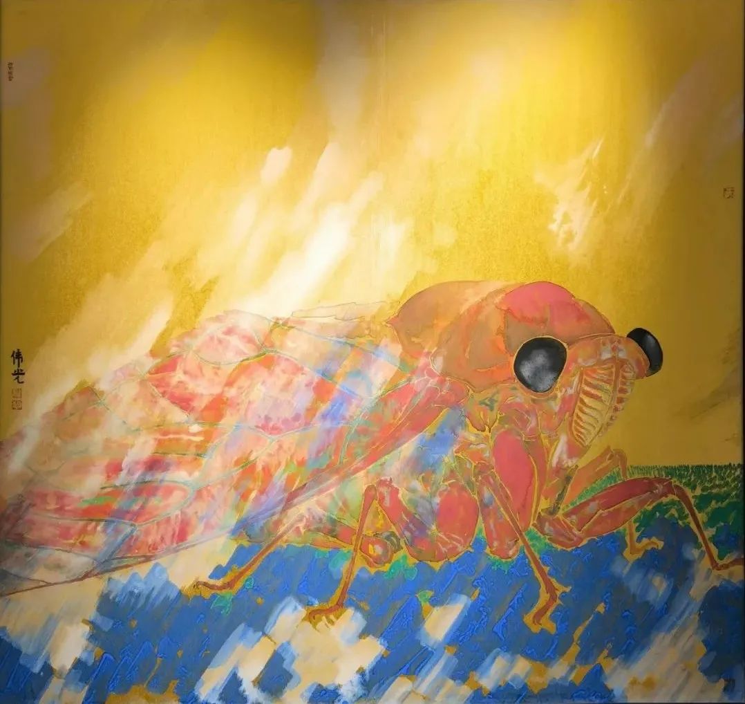 看到日常的事物,一蔬一果,一花一叶,还有蛙叫与蝉鸣,在他的画里呈现出一种禅意,由读画者感受到瑞气迎面而来、空间骤生的富贵气象,怎能让人不欣喜呢。