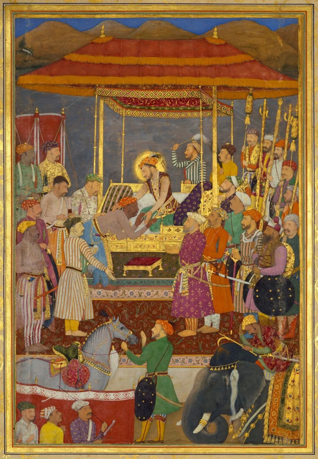 ▲[印]毕奇特《沙贾汗在登基大典上接见三个年长的儿子和阿萨夫汗》17世纪中叶,全世界都处于战争、瘟疫和政局动荡之中,印度也概莫能外。![]()