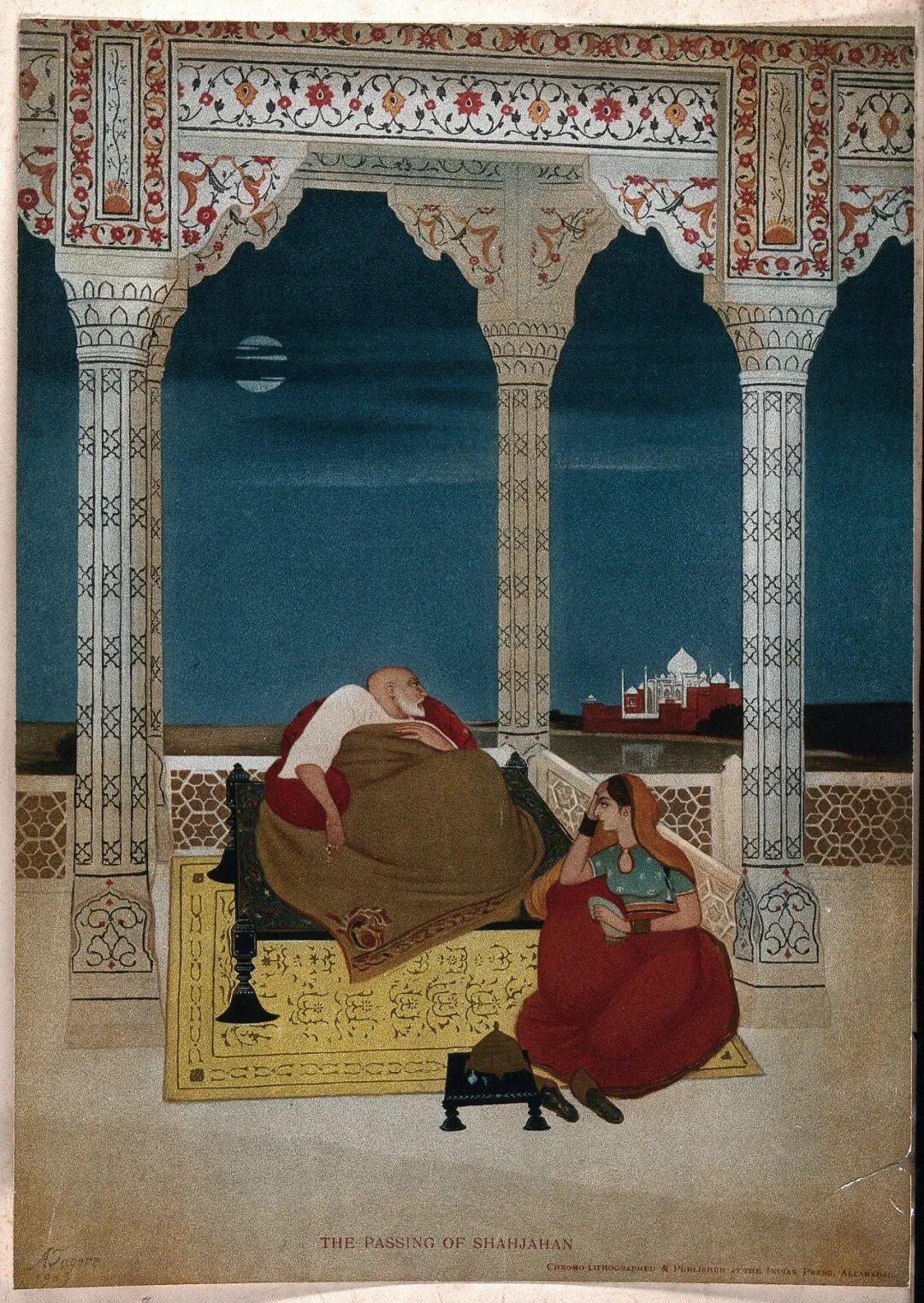 ▲软禁在红堡里的沙贾汗老泪纵横中眺望亡妻的陵寝“泰姬陵”从此,老人只得日夜卧在红堡的八角亭上眺望泰姬陵,在思念爱妻和失去自由的痛苦心境中,沙贾汗凄凉地度过了生命中最后的八年……