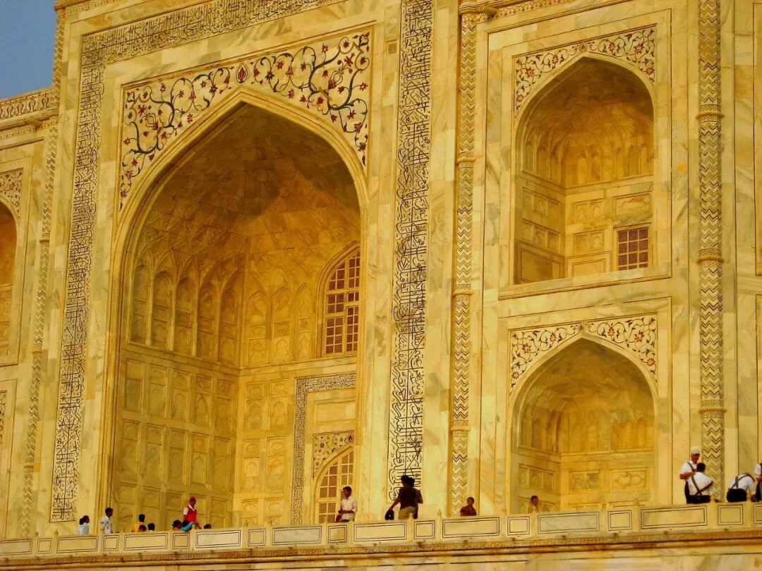 白色大理石来自拉贾斯坦邦的斋浦尔,黑色大理石来自查尔科赫,黄色大理石来自纳尔巴达河畔,光是运输石材就征用了一千多头大象。![]()