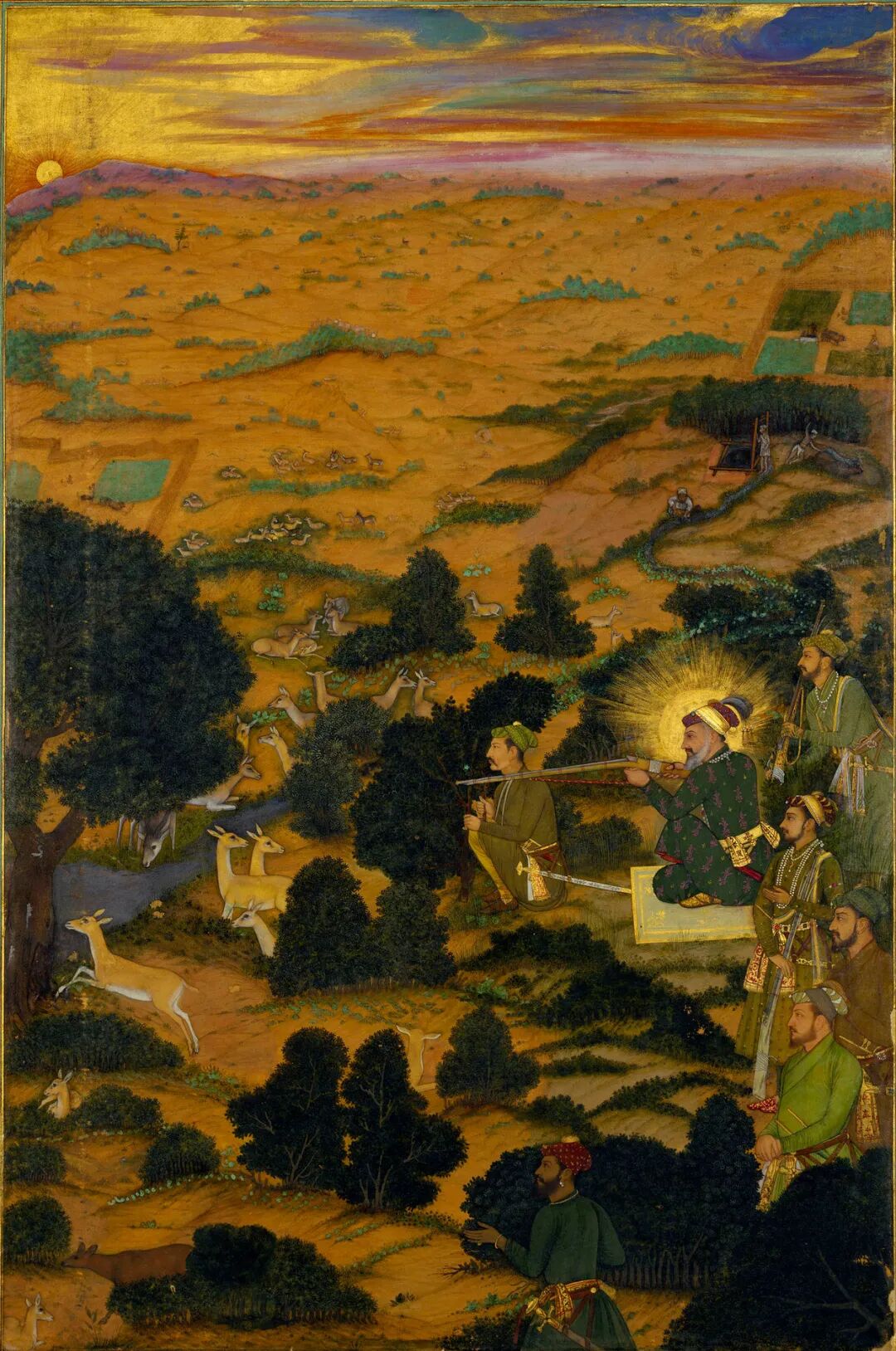 ▲《沙贾汗狩猎图》,《沙贾汗回忆录》中的细密画插图,1707-1712,33 x21.7 cm