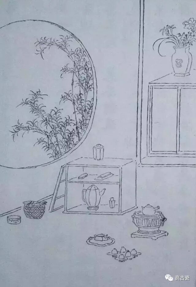 高濂:“若书斋插花瓶,宜短小,以官哥短瓶、纸槌瓶、鹅颈瓶、花觚、高低二种八卦方瓶、茄袋瓶各制小瓶,定窑花尊、花囊、四耳小定壶、细口扁肚壶,青东磁小蓍草瓶、方汉壶、圆瓶,古龙泉蒲槌瓶,各窑壁瓶,次则古铜花觚,铜觯、小尊罍、方壶、素温壶、匾壶,俱可插花。又如,饶窑宜德年烧制花觚、花尊、蜜食罐,成窑娇青蒜蒲小瓶、胆瓶、细花一枝瓶、方汉壶式者,亦可文房充玩。”