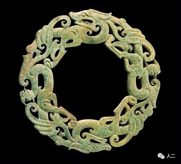 尤为精美的是河北平山战国中山王墓出土的战国中期透雕夔龙玉环,构图十分简洁,但给人感觉简约而不简单。
