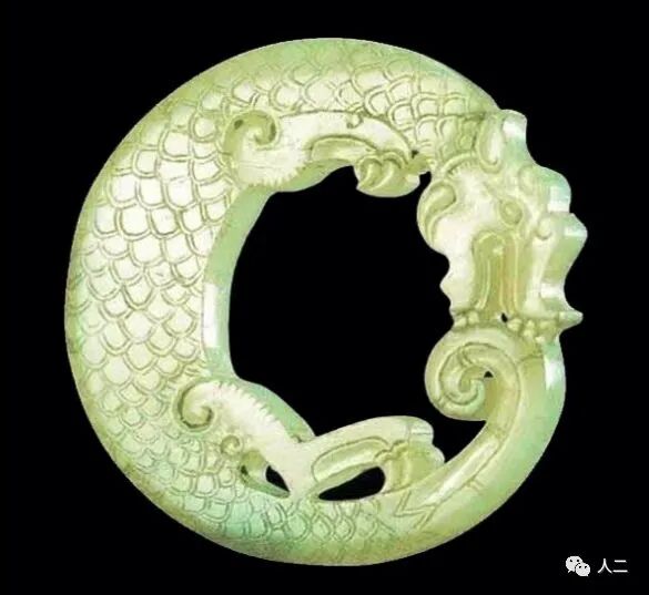 四是镂雕咬尾龙形玉环。这种龙纹玉环构图简洁、明快,但却十分干炼、生动。