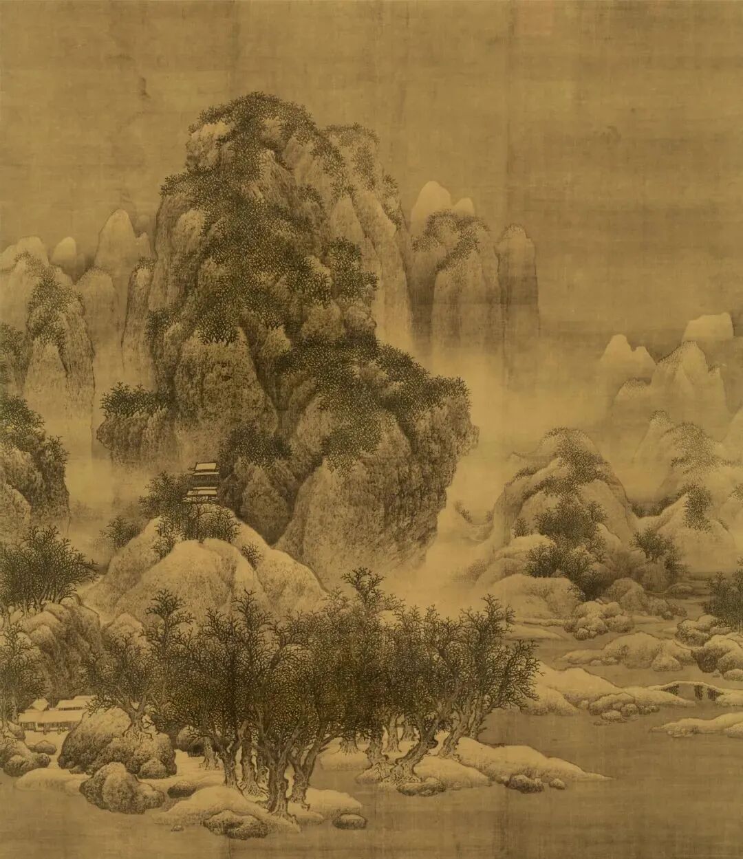 《雪景寒林》和《漁村小雪》,採用了不同的技法,顯示出不同的情調,但在精神上,都體現了對歸隱生活的嚮往。在《雪景寒林》,大雪把隱居之人與喧囂塵世隔絕開來,用寒林襯托冬雪,用山水的寂寥映射人心的寂寥。在《漁村小雪》,漫天而降的雪,為漁村增添了靜謐氣息和野逸趣味,表現了畫家的江村平實與海山幻想。無論飄落,還是襯托,雪,落在畫上,終究還是落在心裡的。