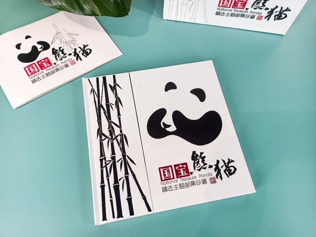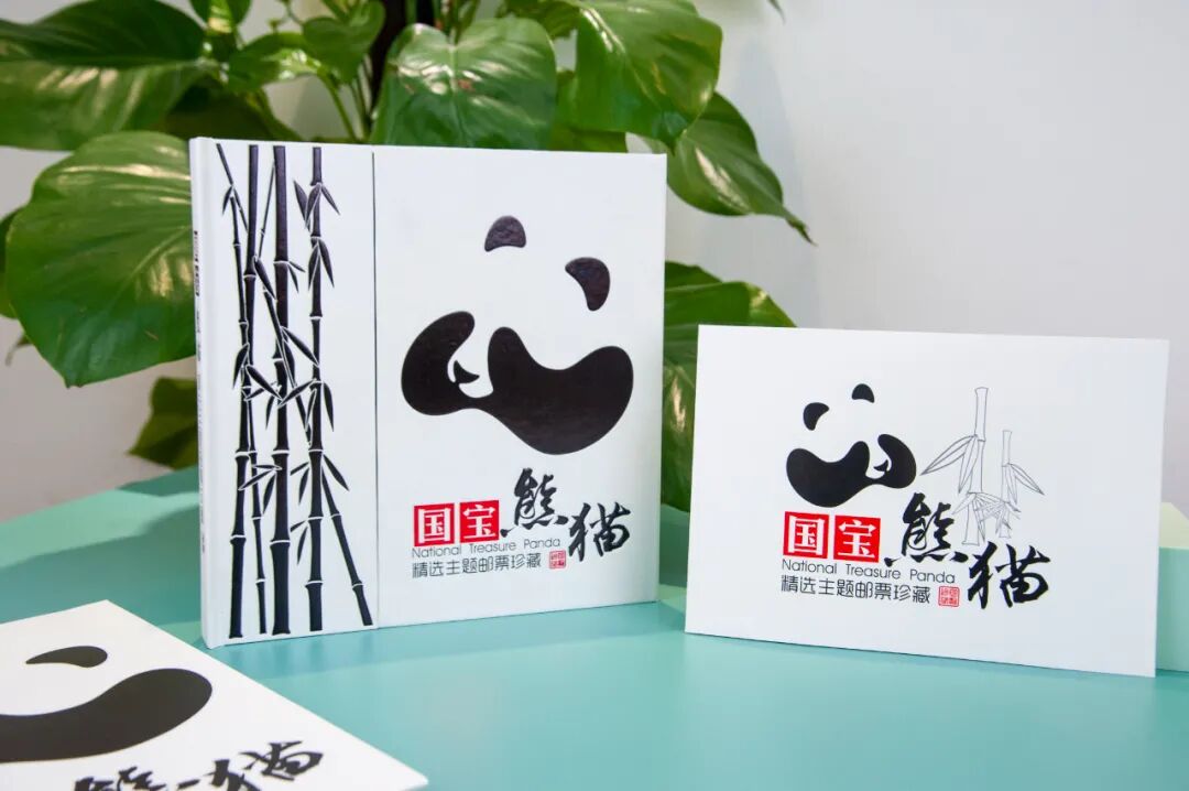 邮册封面整体设计以黑白为主调,黑白色在美学中为大美之色,恒久之色,以此彰显大熊猫神秘莫测的气质。